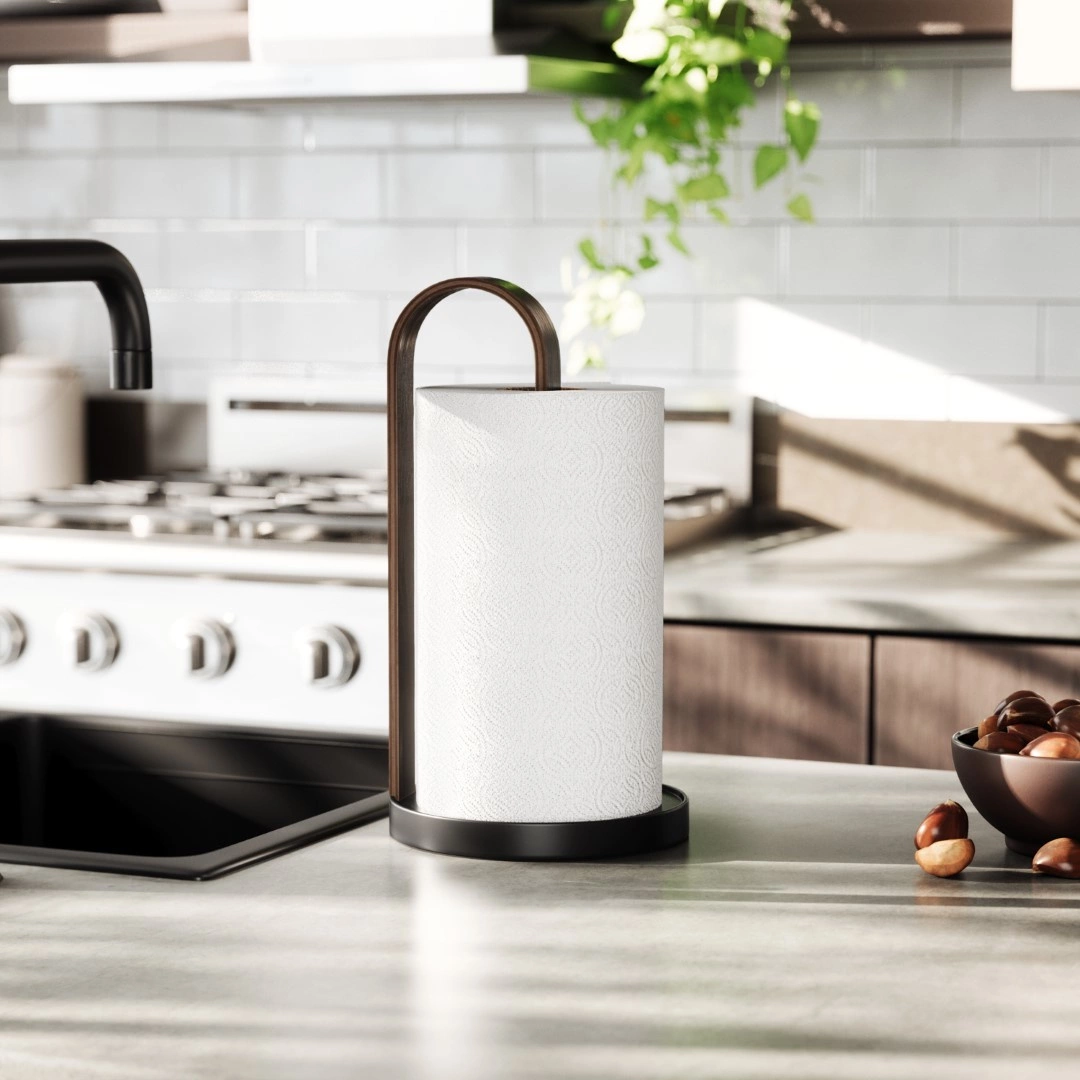 Kuchyňský věšák na ručníky Bellwood z ořechového dřeva je kombinací elegance a funkčnosti. Je vyroben z ohýbaného dřeva a poskytuje jedinečný design, který vnese do vaší kuchyně nádech luxusu. Je nejen vizuálně přitažlivý, ale také praktický. Díky zatížené kovové základně je stojan stabilní a umožňuje snadno odtrhnout list papíru jednou rukou. Je ideální volbou pro ty, kteří ocení pohodlí a styl.