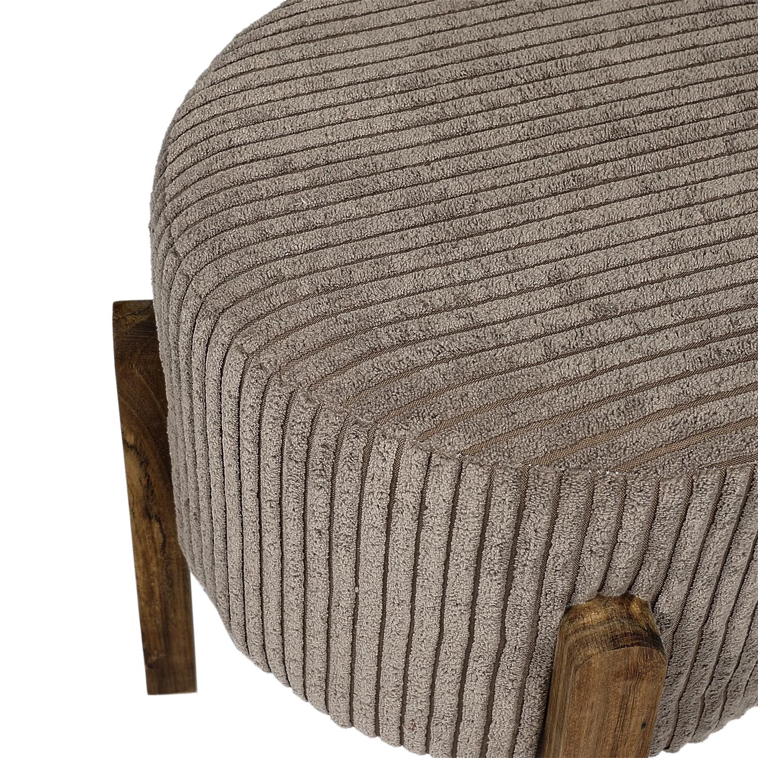 Taburet Scott perfektně zapadne do moderně zařízených prostor, podtrhne charakter místnosti svým výrazným tvarem a módním čalouněním. Hnědý samet nejen působí luxusně, ale je také příjemný na dotek a vysoce odolný. Dřevěná základna s viditelnou kresbou akáciového dřeva dodává taburetu přírodní a hřejivý nádech. Tento taburet se snadno uplatní jak v obývacím pokoji u konferenčního stolku, tak v ložnici jako pohodlné sezení ke kosmetickému stolku nebo jako další místo k odpočinku.