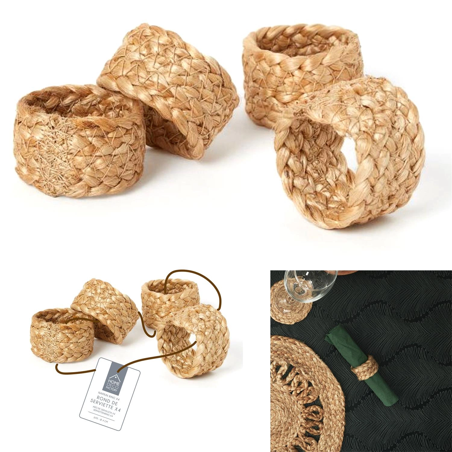 - Sada se skládá ze 4 kroužků na ubrousky vyrobených z juty