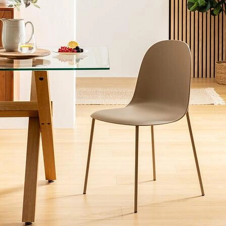 Jídelní židle Asan od značky Atmosphera je esencí skandinávského stylu v moderním pojetí. Model v kávovém odstínu, vysoký 79 cm a široký 51 cm, spojuje odolnost kovových nohou s pohodlím tvarovaného sedáku z plastu. Je to ideální židle do jídelny, kuchyně nebo kavárny, která zaujme decentním designem, snadnou údržbou a univerzální barevností.