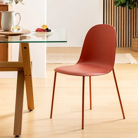 Jídelní a kuchyňská židle Asan od značky Atmosphera je ukázkou moderního skandinávského designu, který zaujme jemnými liniemi a energizující barvou terracotta. Lehká a zároveň stabilní konstrukce z kovu a polypropylenu s matným povrchem zajišťuje, že tento model se skvěle hodí jak do domácí jídelny, tak do komerčních prostor. Výška sedáku 46 cm a ergonomicky tvarované opěradlo garantují pohodlí při každodenním používání.