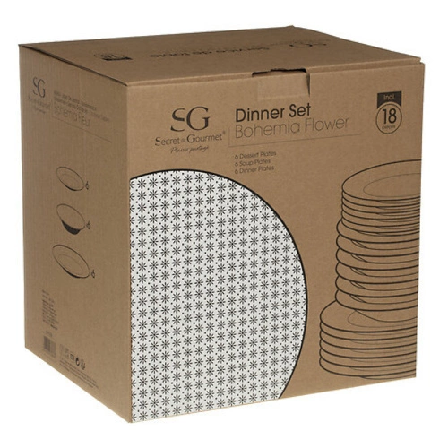 Sada nádobí Bohemia je jedinečnou nabídkou pro ty, kteří oceňují eleganci a modernost v jednom. Sada se skládá z 18 kusů, které díky geometrickému vzoru tvoří harmonický celek. Každý kus nádobí je vyroben z porcelánu, který je nejen krásný, ale také odolný. Díky klasické kombinaci bílé a černé barvy se sada skvěle hodí do každého interiéru bez ohledu na styl - moderní, orientální nebo boho.