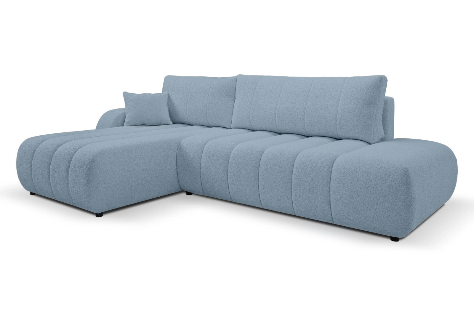 Modrý rohový gauč Hobro perfektně zapadne do moderního interiéru a stane se dominantou vašeho obývacího pokoje. Světlý odstín látky oživí prostor, jednoduchý tvar a decentní černé nožičky podtrhují lehkost a eleganci tohoto nábytku. Levý roh skvěle vynikne jak ve větších, tak i v menších obývacích pokojích a umožní snadno vytvořit útulnou relaxační zónu, která zaujme vzhledem i pohodlím při každodenním používání.