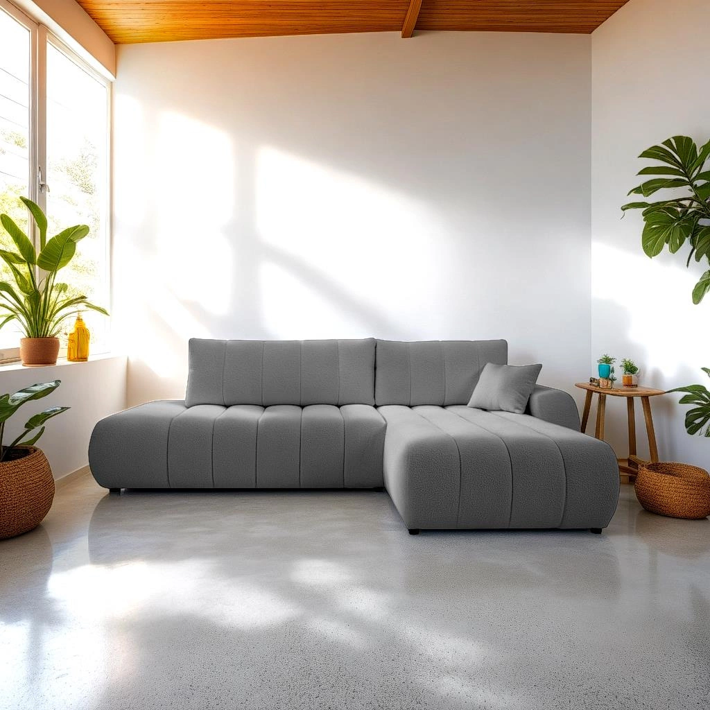 Tato moderní rohová sedačka do obývacího pokoje je určena pro ty, kdo hledají pohodlí, styl a praktičnost v jednom kuse nábytku. Skvěle se uplatní jak ve větších obývacích pokojích, tak i v menších bytech, kde slouží jako komfortní relaxační zóna i přistýlka pro hosty. Elegantní šedá barva a univerzální tvar umožňují snadné kombinování s dalším moderním nábytkem a doplňky.