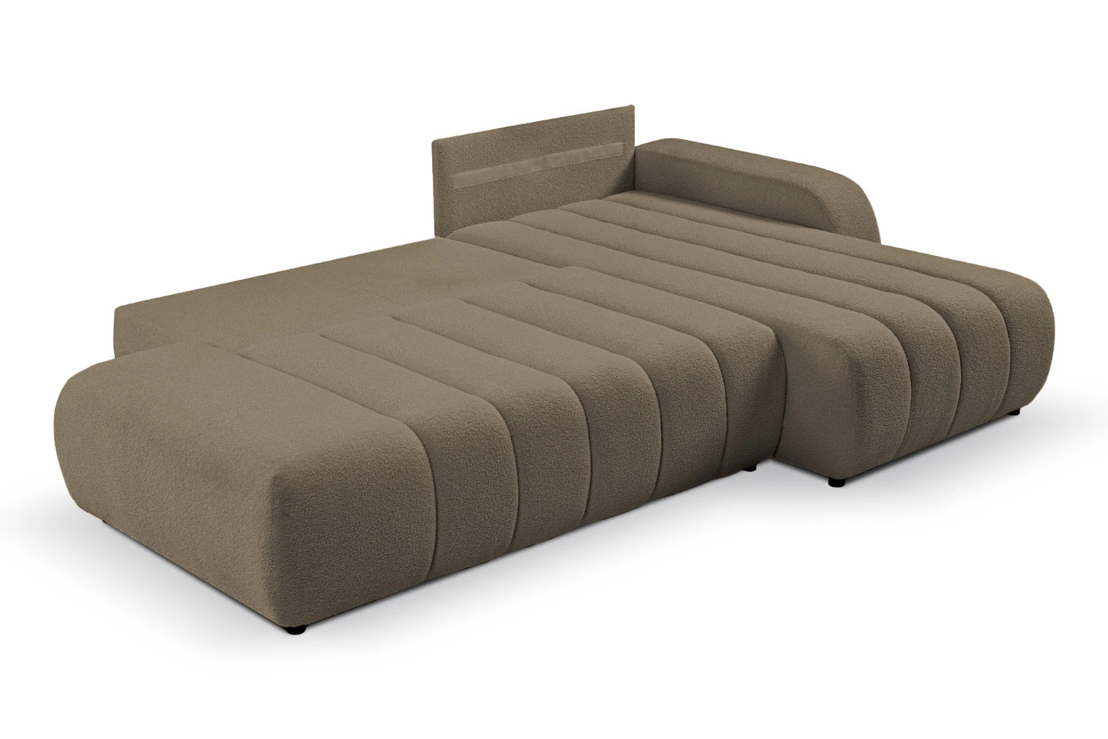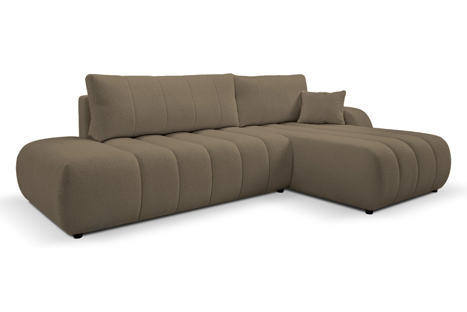 Rohová sedačka s rozkládací funkcí Hobro od značky Intesi je moderní, pravostranný nábytek do obývacího pokoje, který spojuje pohodlí každodenního odpočinku s praktickými řešeními. Čalouněná příjemnou látkou v elegantním šedo-hnědém odstínu nabízí komfortní posezení pro tři osoby a velkou spací plochu 145×212 cm. Další úložný prostor umožňuje snadné uložení ložního prádla a stabilní základna na šesti černých nožkách podtrhuje její moderní charakter.