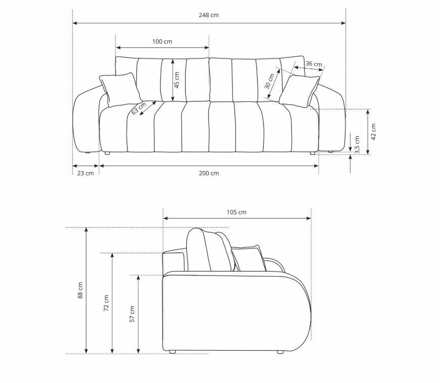 Rozkládací pohovka Hobro od značky Intesi je třímístná sedačka s funkcí spaní, vyrobená z masivního borovicového dřeva a potažená tmavě šedou látkou. Tento model spojuje moderní styl s praktickými řešeními – nabízí úložný prostor na lůžkoviny a prostorné, pohodlné sedadlo z čalounické pěny. Díky šířce 248 cm a spací ploše 144×200 cm je pohovka ideální jak pro každodenní odpočinek, tak jako postel pro hosty.