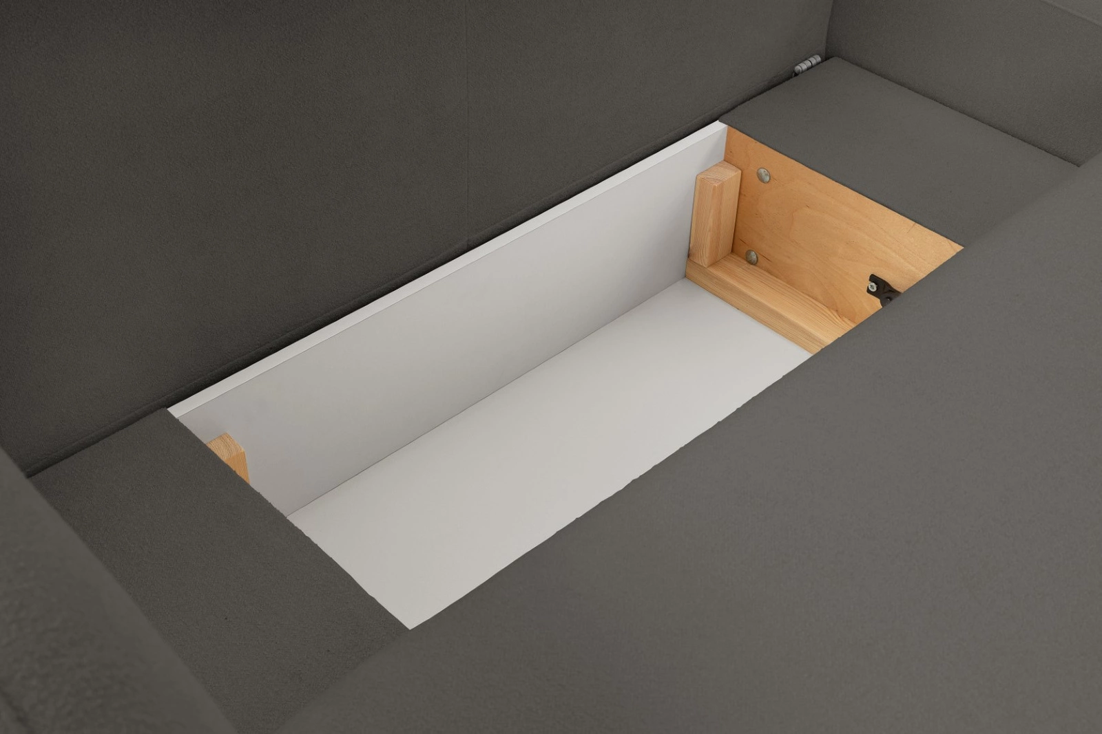 Tato moderní rozkládací rohová sedačka překvapí svou praktičností. Rychlý mechanismus typu DL umožní snadno proměnit rohovou pohovku v pohodlné lůžko o rozměrech 138×210 cm – ideální na každodenní spaní nebo pro hosty. Další úložný prostor na lůžkoviny usnadňuje organizaci a umožňuje mít náhradní deky či polštáře vždy po ruce, aniž byste museli zbytečně plnit skříně.