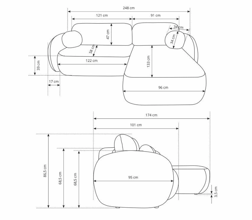 - Optimální rozměry – šířka 248 cm je vhodná jak do prostorných, tak i menších obývacích pokojů