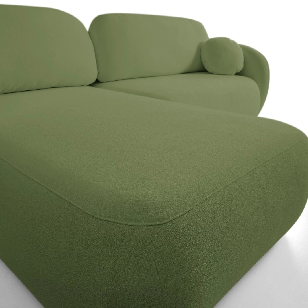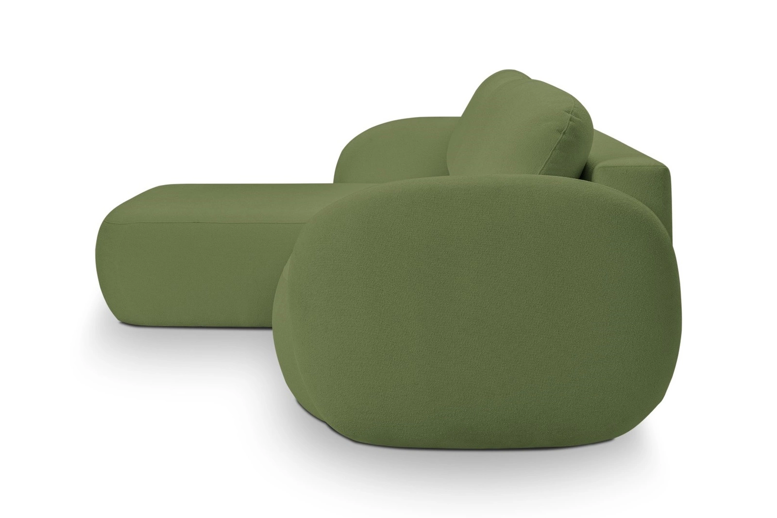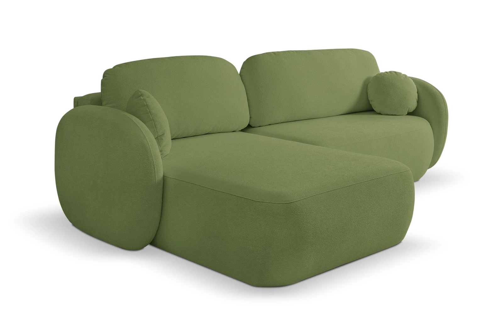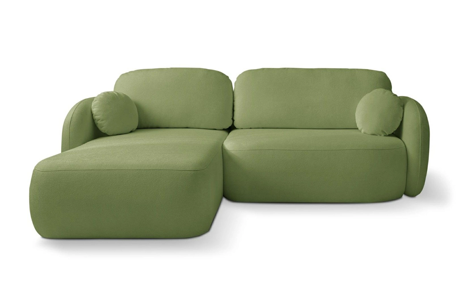 Rohová rozkládací pohovka levá Salby zelená moderní do obýváku s úložným prostorem