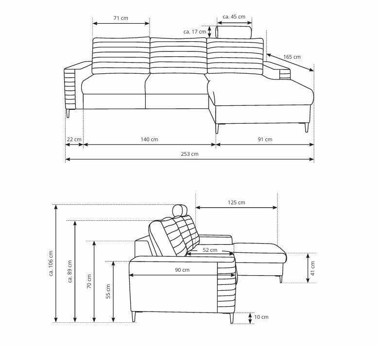Anatomicky tvarované sedadlo vyplněné čalounickou pěnou a vlnovcovými pružinami zajišťuje stabilitu i měkkost zároveň, díky čemuž je relaxace po práci nebo rodinný filmový večer skutečným potěšením. Rozkládací rohová sedačka Hald snadno proměníte v plnohodnotnou postel o rozměrech 140×212 cm – ideální řešení, pokud často hostíte přátele nebo hledáte pohodlnou rohovou sedačku na každodenní spaní. Praktický úložný prostor na lůžkoviny vám umožní udržet pořádek a mít deky či polštáře vždy po ruce.