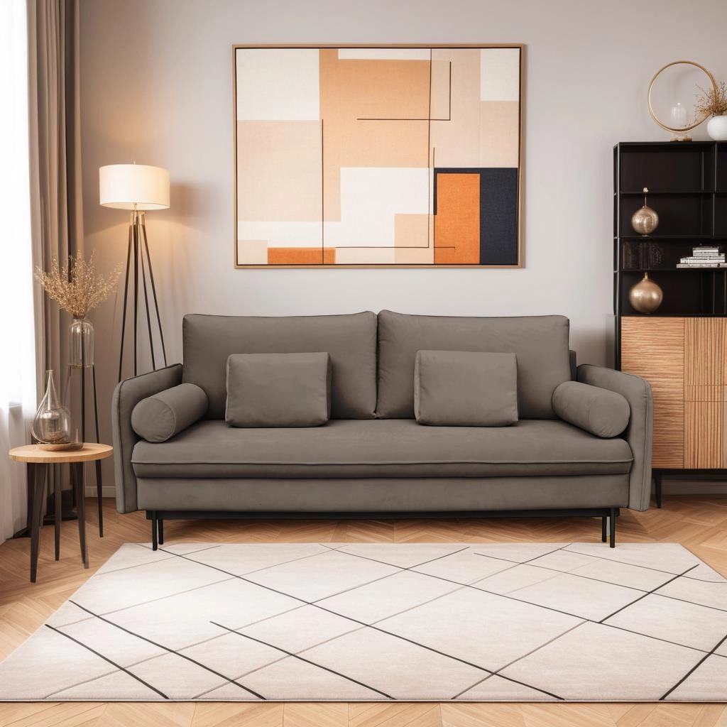 Diana není jen stylová pohovka pro 3 osoby, ale i funkční řešení pro ty, kdo chtějí multifunkční nábytek. Díky jednoduchému mechanismu DL ji snadno rozložíte během chvilky a získáte pohodlné lůžko o rozměrech 195×135 cm. Úložný prostor pod sedákem umožní snadno uschovat deky, polštáře i další povlečení, což oceníte zejména v menších bytech.