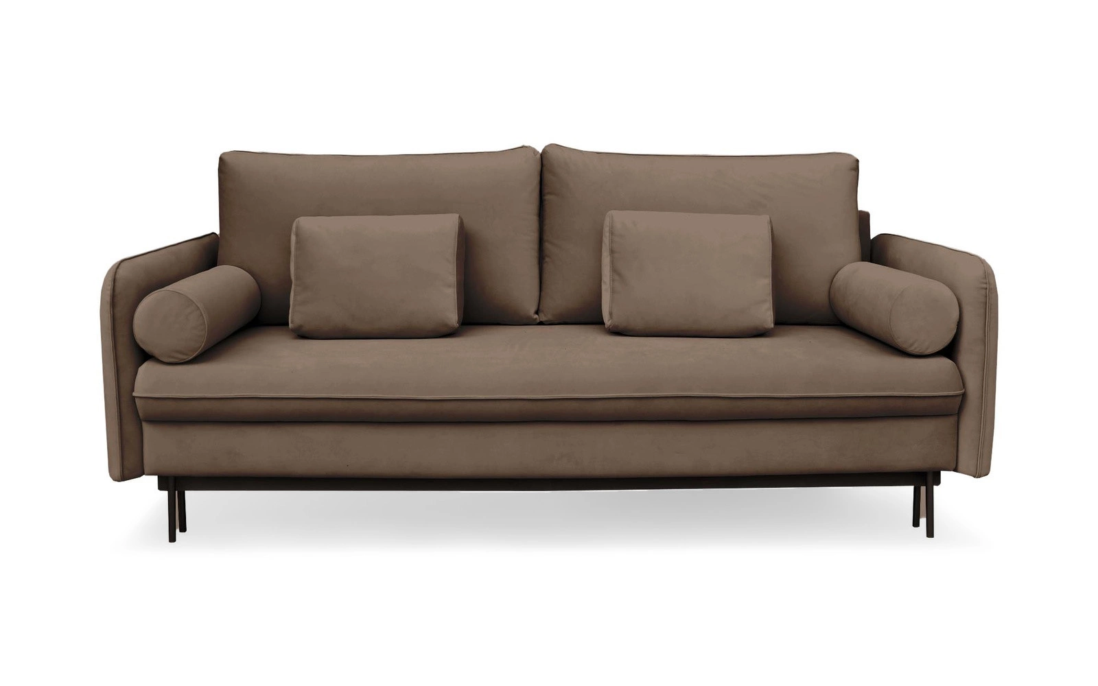 Interiéry zařízené v duchu moderní jednoduchosti ocení pohovku Diana pro její minimalistický tvar, který se skvěle hodí jak do prostorného obýváku, tak do útulné ložnice. Hnědé čalounění dodá prostoru teplo a útulnost, je příjemné na dotek a odolné vůči každodennímu používání. Jemné prošití zdůrazňuje geometrické linie pohovky a černé nohy dodávají lehkost a moderní vzhled. Tento model perfektně zapadne do skandinávského interiéru, kde podtrhne přirozenost i funkčnost domácího prostředí.