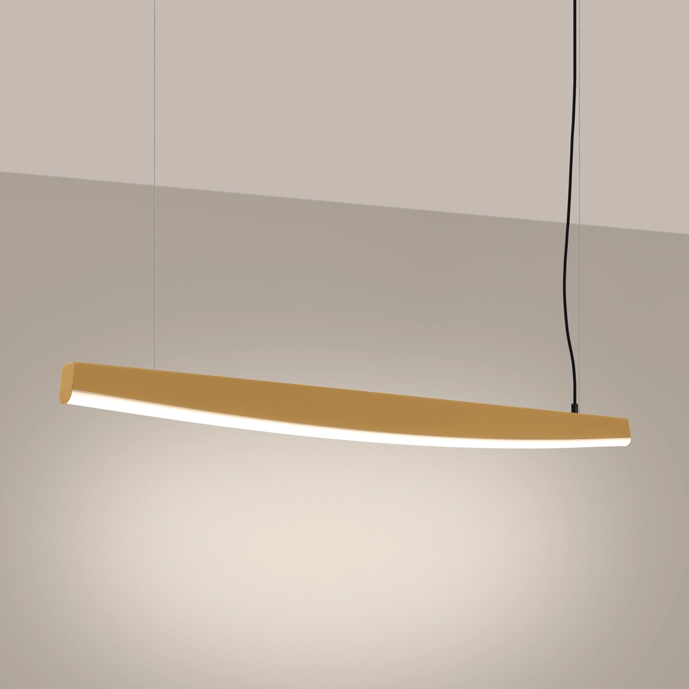 Moderní závěsné LED svítidlo JORUN 120 od značky Thoro je skvělou volbou pro milovníky minimalistického designu a funkčního osvětlení. Vyrobeno z odolné oceli v elegantní zlaté barvě, s působivou šířkou 120 cm a nastavitelnou výškou zavěšení až do 210 cm, perfektně podtrhne charakter moderních interiérů. Integrované LED osvětlení o výkonu 22W poskytuje teplé a příjemné světlo, díky čemuž je lampa ideální jako osvětlení nad jídelní stůl, lustr do obývacího pokoje nebo světlo do kuchyně.