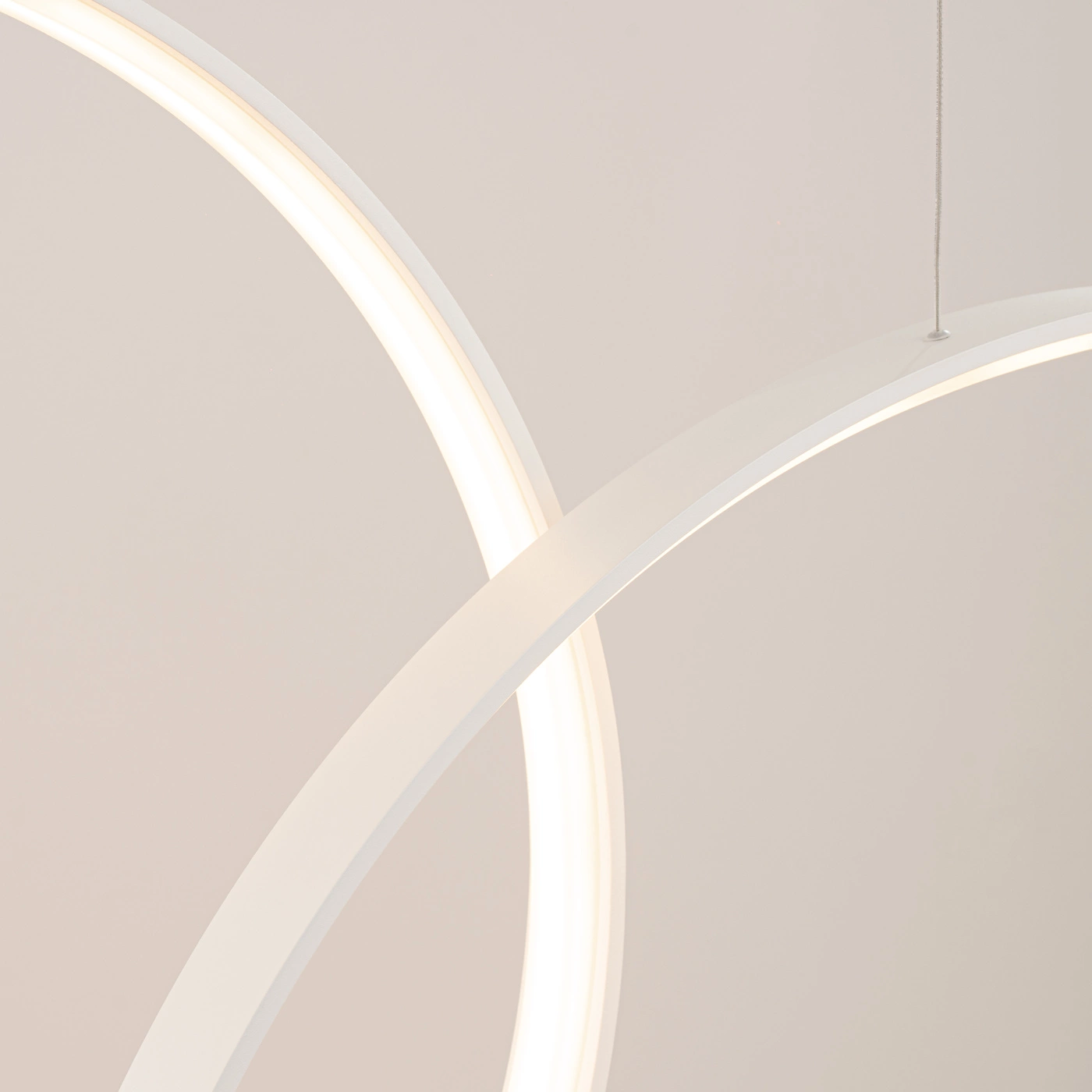Bílé závěsné LED svítidlo – srdce moderního obývacího pokoje a jídelny