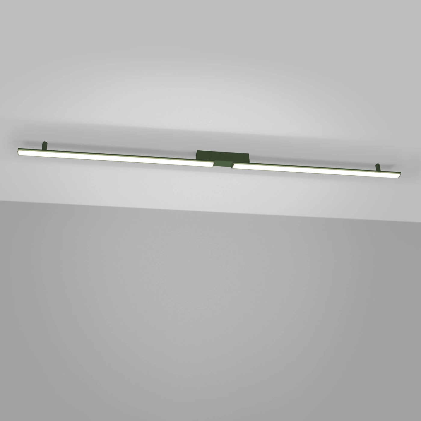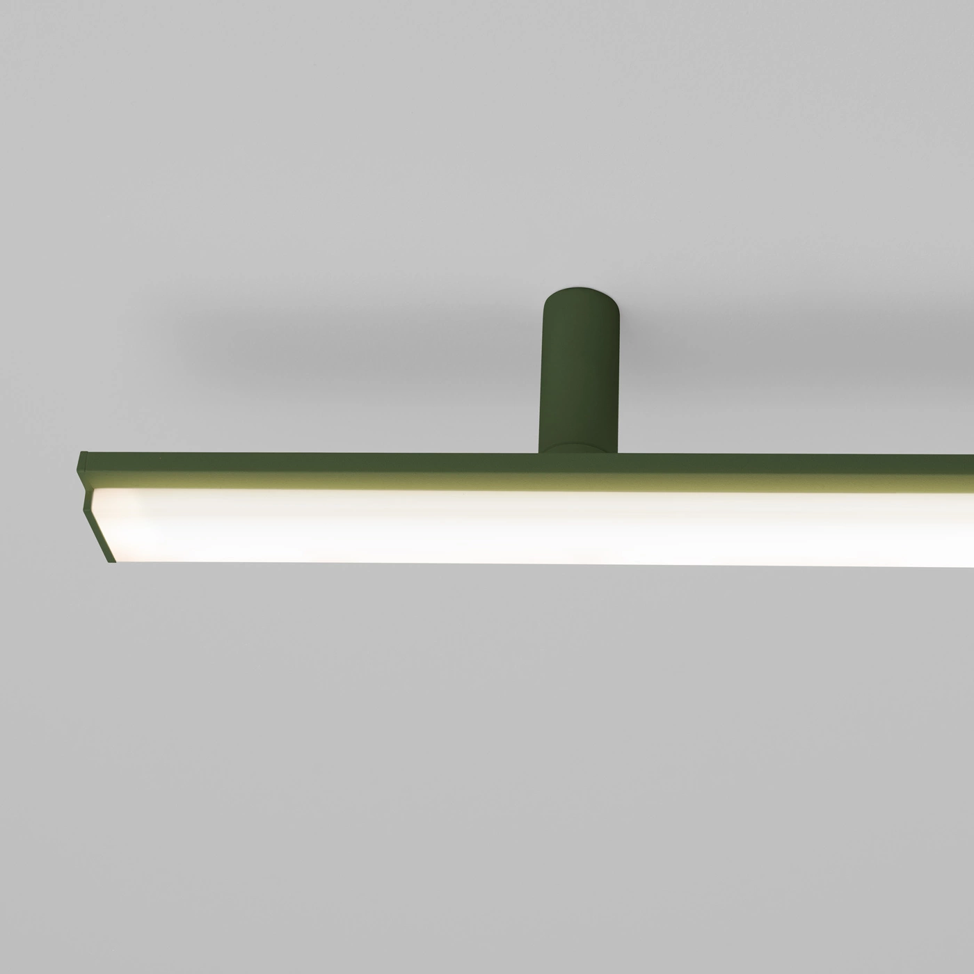 LED stropnice LAGOM v olivově zelené barvě boří stereotypy klasického stropního osvětlení a přináší do interiéru svěžest a originalitu. Její jednoduchý, prodloužený tvar a matný povrch skvěle doplňují moderní styl a podtrhují charakter každého obývacího pokoje, kuchyně nebo ložnice. Díky použití hliníku působí svítidlo lehce, přitom však solidně a elegantně.
