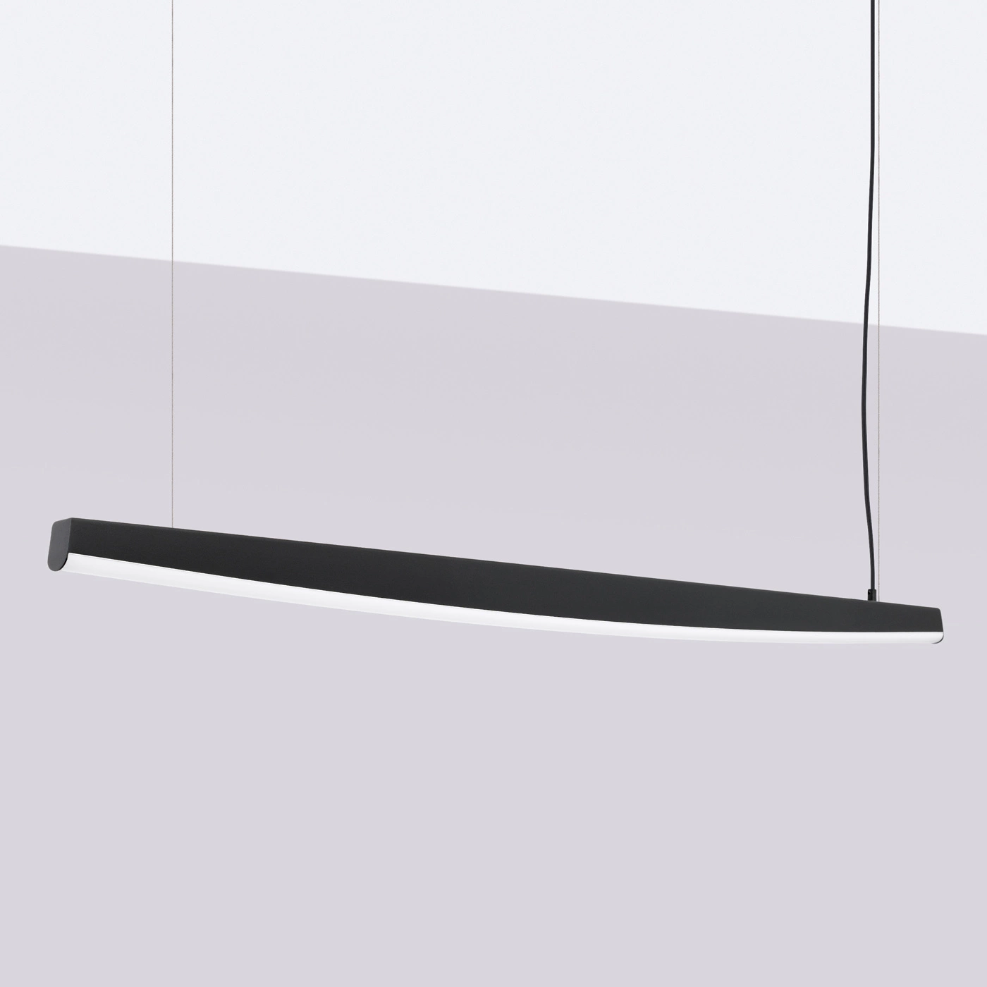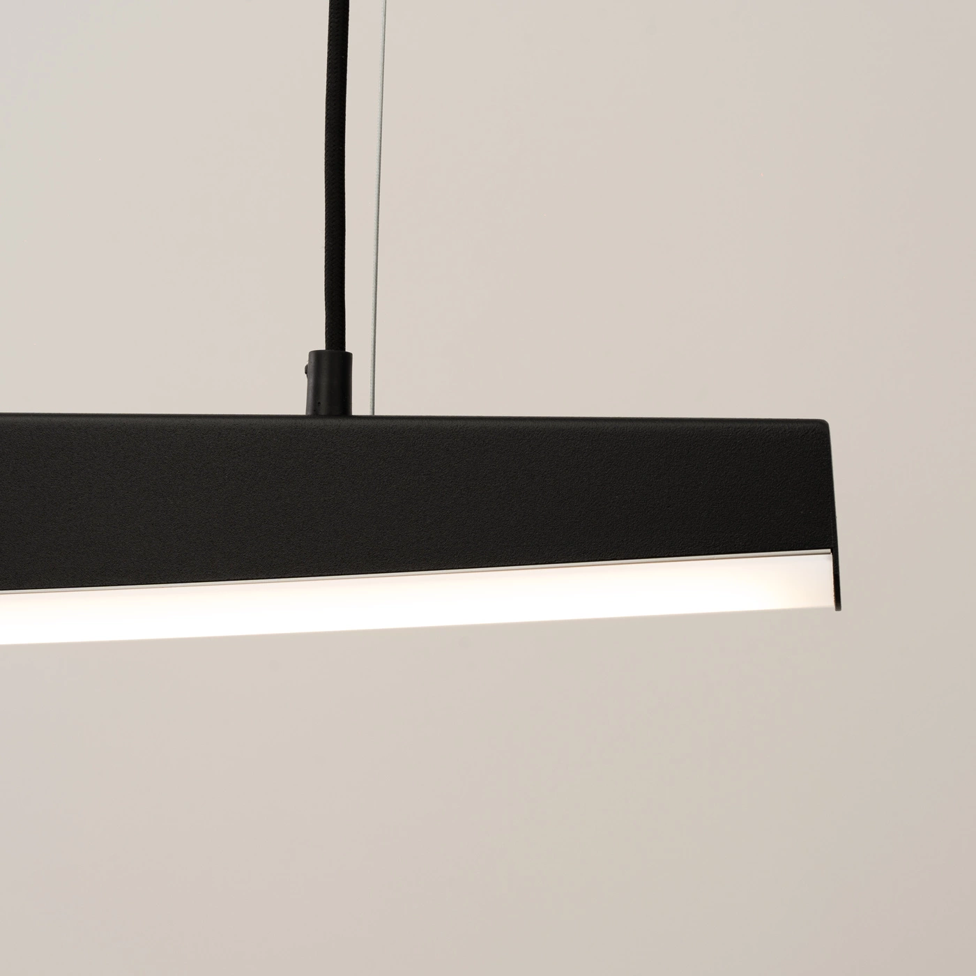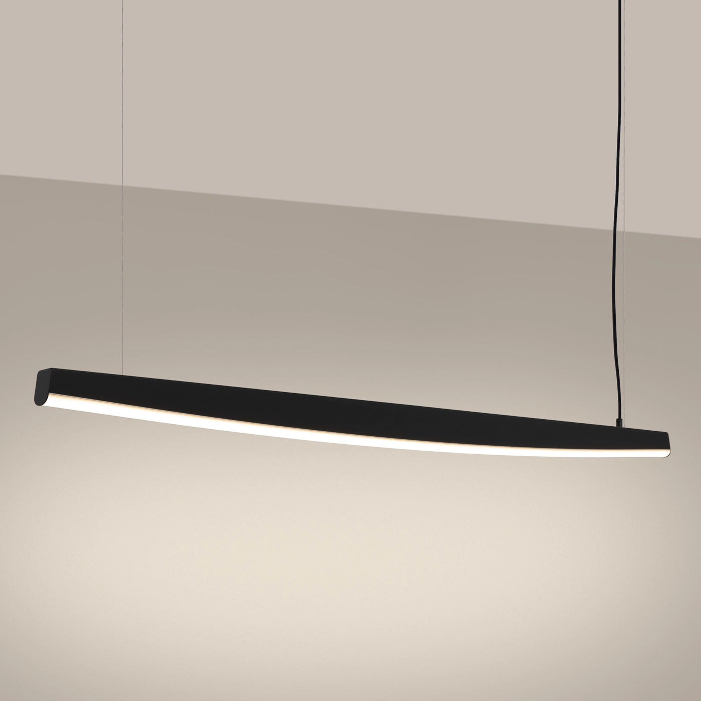 Závěsné LED svítidlo JORUN 150 černé od značky Thoro je moderní stropní osvětlení, které zaujme minimalistickým designem a vysokou funkčností. Vyrobeno z oceli a akrylu, s působivou šířkou 150 cm a maximální délkou zavěšení až 210 cm, je ideální jako lampa nad jídelní stůl, do obývacího pokoje, kuchyně nebo jídelny. Integrovaný LED zdroj 25W vyzařuje příjemné, teplé světlo o teplotě 3000K, což zajišťuje efektivní osvětlení i větších prostor.