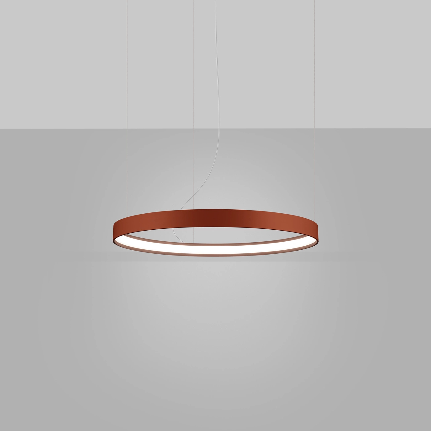 Moderní LED lustr RIO 55 červený od značky Thoro je výrazným prvkem do obývacího pokoje, jídelny nebo kuchyně, který kombinuje minimalistický design s inovativními technologiemi. Vyrobený z odolného hliníku a akrylu, nabízí nastavitelnou výšku zavěšení (až 150 cm) a plynulé stmívání světla s neutrální barvou 4000K. Průměr 55 cm dělá ze stropního svítidla centrální bod interiéru, zároveň poskytuje efektivní osvětlení (4842 lm) – ideální nad jídelní stůl, do ložnice nebo moderní kuchyně.