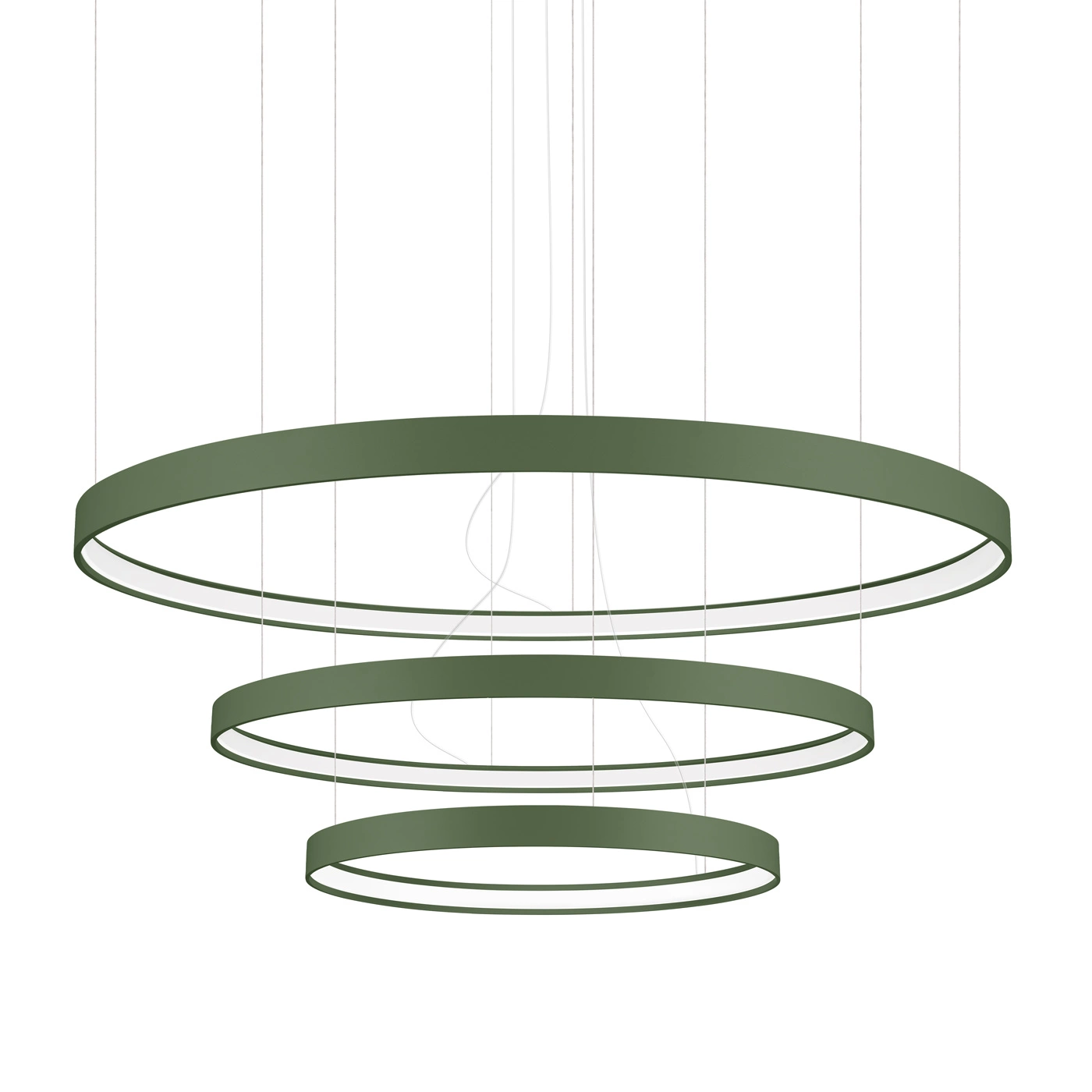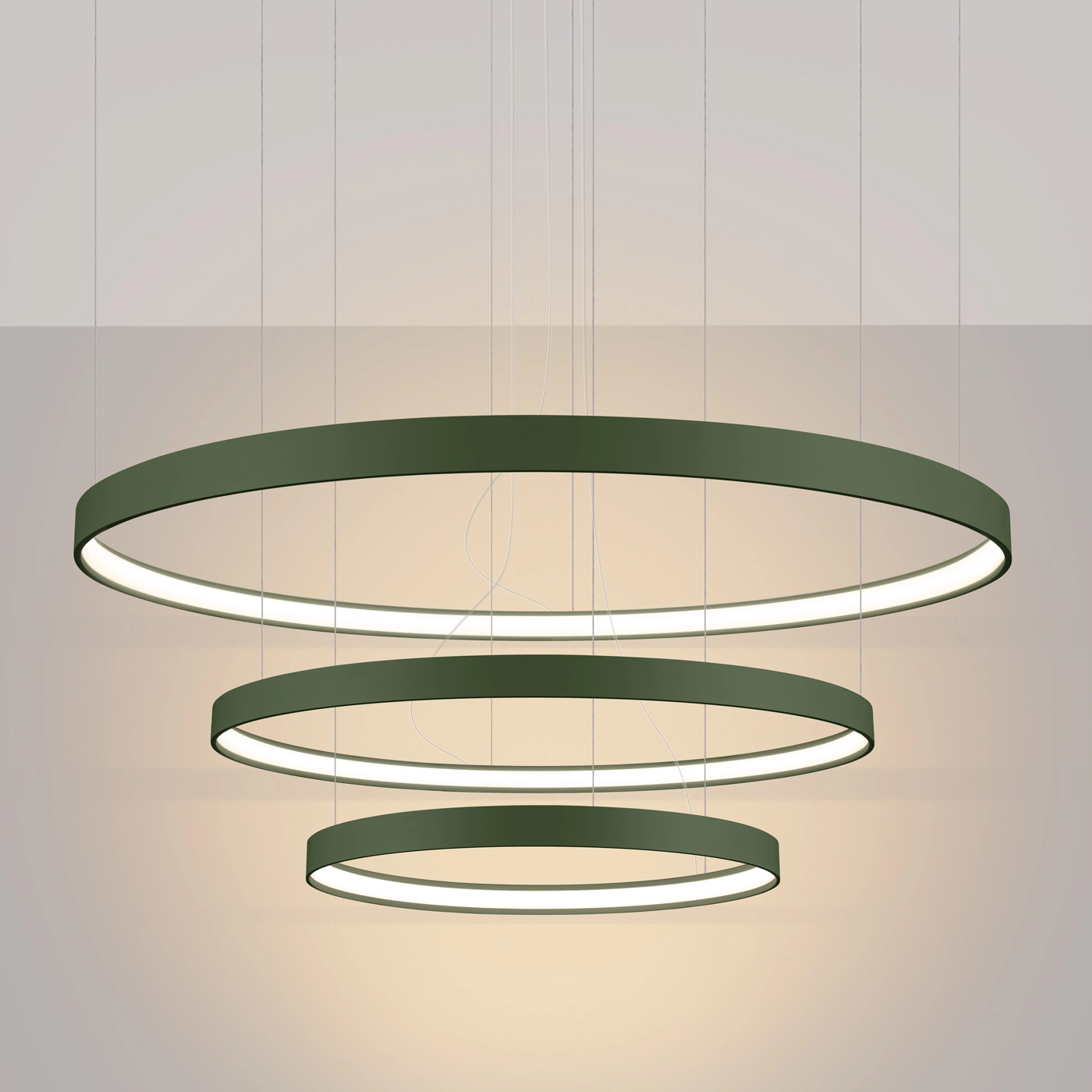 LED lustr RIO 3 v sobě spojuje minimalistický tvar a designové barvy, které zaujmou na první pohled a obohatí vzhled každého prostoru. Kulaté hliníkové stínidla v olivově zelené barvě dodávají interiéru svěžest a jedinečný charakter, přičemž dokonale zapadají do současných trendů moderního bydlení. Tento lustr do obývacího pokoje či jídelny vynikne jako hlavní osvětlení i jako poutavá lampa nad kuchyňský ostrůvek nebo stůl.