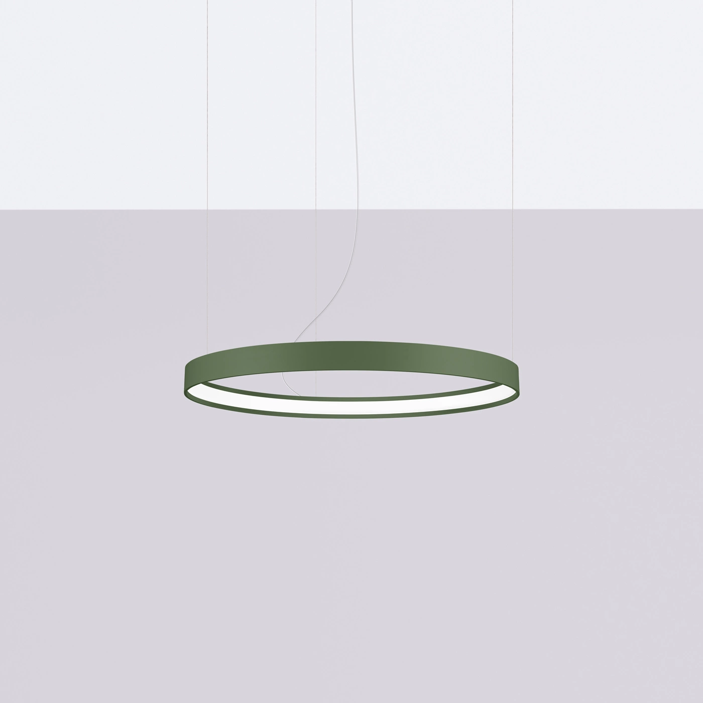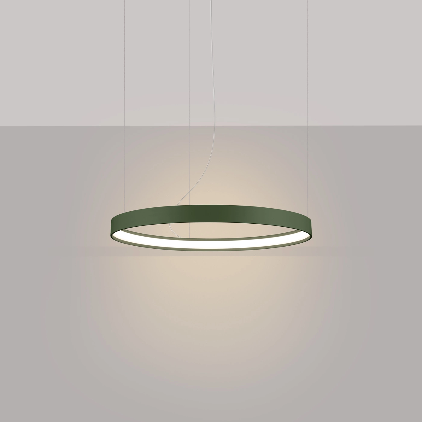 Olivově zelený LED lustr RIO 55 je skvělou volbou pro ty, kteří chtějí vnést do svého domova originální a moderní atmosféru. Matná povrchová úprava hliníku jemně zvýrazňuje geometrický tvar svítidla a jeho kulatý design se harmonicky hodí jak do minimalistických, tak i do eklektických interiérů. Nejde jen o svítidlo do obýváku – tento stylový závěsný lustr nad stůl v jídelně nebo do kuchyně upoutá pozornost a vytvoří jedinečnou atmosféru.