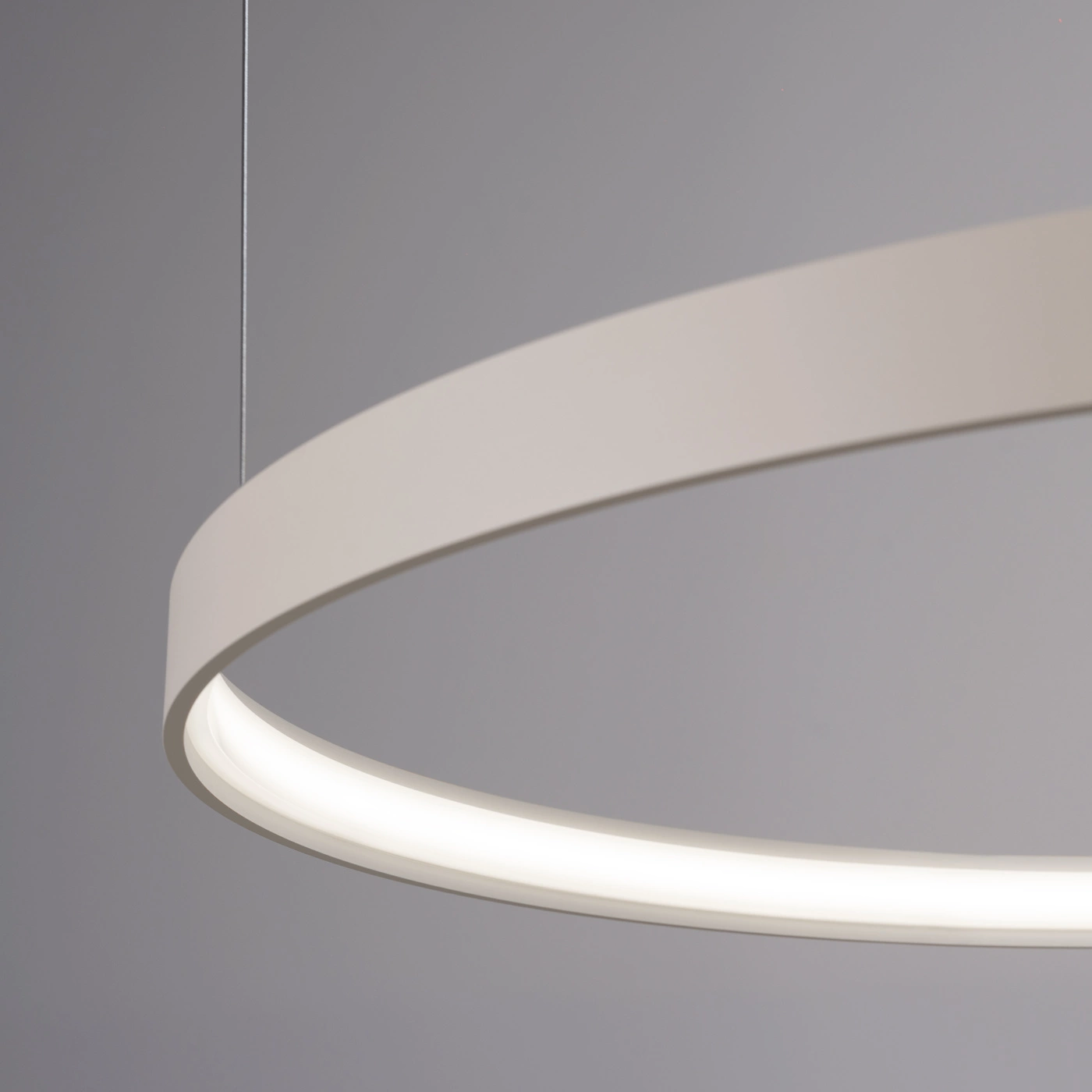 Závěsné svítidlo RIO 2 je ideální volbou pro ty, kdo preferují minimalistický, moderní styl a jemné, béžové detaily. Kulatý tvar a jemné linie lustru perfektně zapadnou do prostorných obývacích pokojů, elegantních jídelen, ale i do moderních kuchyní a ložnic. Hliník použitý na výrobu stínidla zajišťuje dlouhou životnost, zatímco akrylové zakončení rozptyluje světlo a vytváří příjemnou, přirozenou atmosféru. S tímto modelem získáte nejen praktické osvětlení, ale také jedinečný dekorativní prvek, který interiéru dodá lehkost a harmonii.