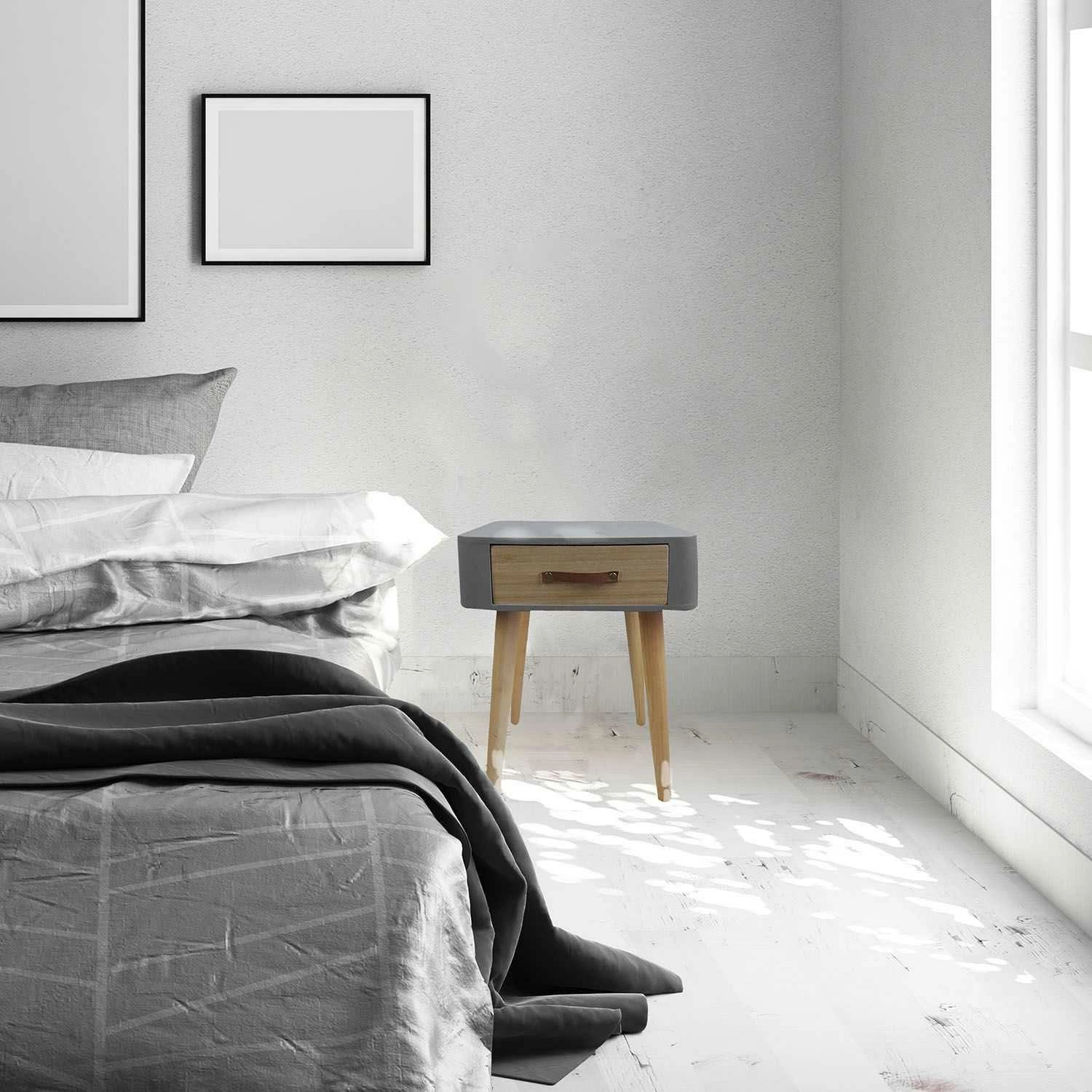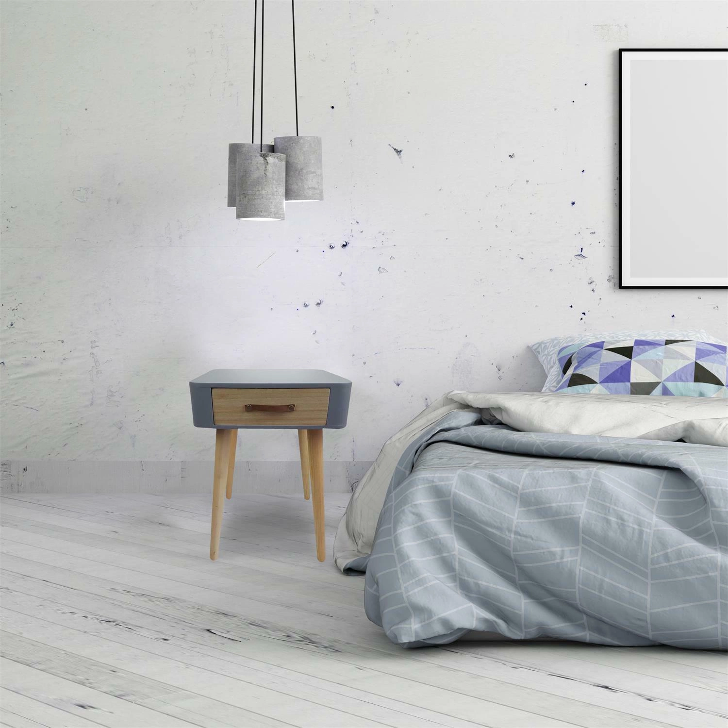 Noční stolek Enano je nejen praktickým kusem ložnicového nábytku, ale také skutečnou ozdobou místnosti, dokončenou ve skandinávském stylu. Nábytek krásně kombinuje šedý korpus a horní desku s přírodním dřevěným čelem zásuvky a dřevěnými nohami. Mírně zaoblené hrany, charakteristické šikmé nohy a teplý odstín dřeva dodají interiéru útulnou atmosféru. Skříňka je k dispozici také v bílé barvě. Díky své barvě a nadčasovému tvaru bude dobře fungovat i v kombinaci s dalším nábytkem dokončeným v šedých nebo světlých odstínech dřeva. vlastnosti výrobku: -rohové čalounění