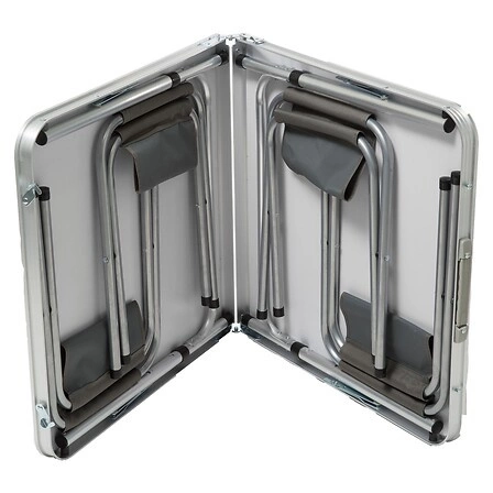 • Stůl se snadno přenáší a rozkládá a židle se vejdou dovnitř složeného stolu, aby se ušetřilo místo.