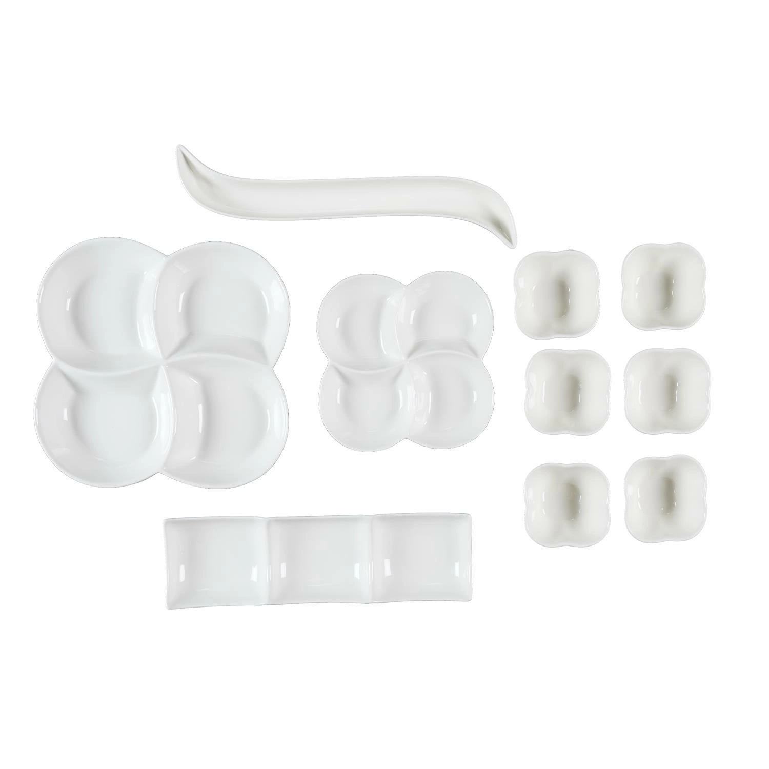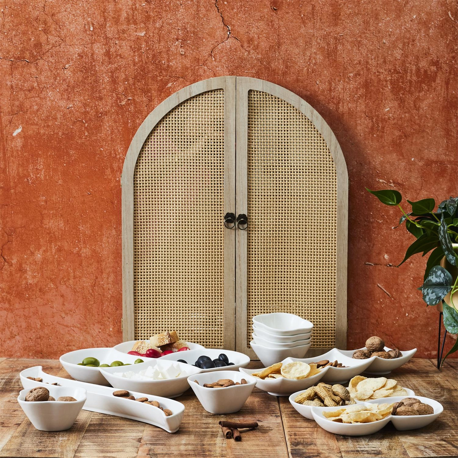 Sada nádobí na servírování předkrmů od společnosti Intesi se vyznačuje moderním designem, který se uplatní v každé kuchyni. Bílé nádobí je nejen stylové, ale také praktické - lze je mýt v myčce nádobí i v mikrovlnné troubě. Připravte na nich předkrmy pro rodinná setkání nebo večírky s přáteli.