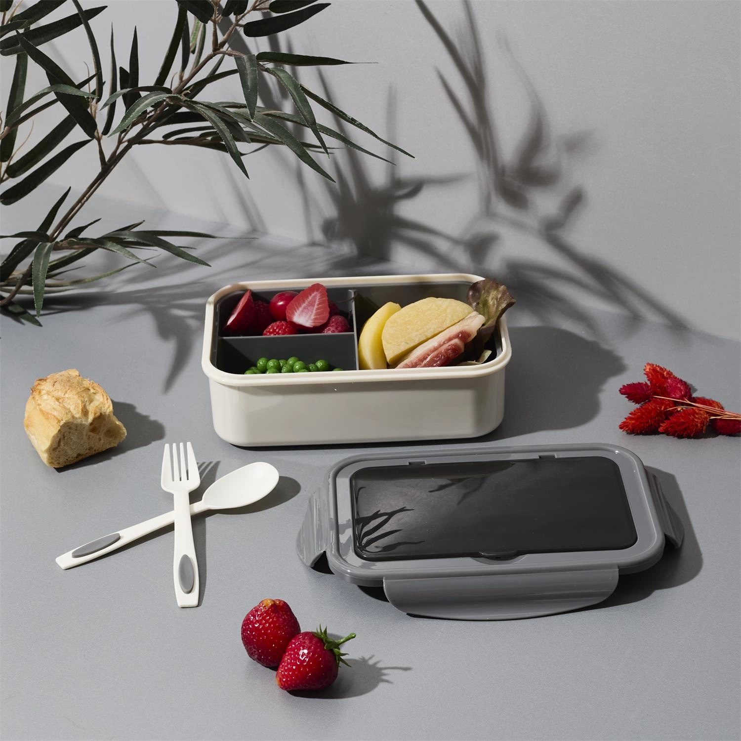 Minimalistická šedá barva a moderní styl lunchboxu dokonale zapadají do aktuálních trendů. Polypropylenová konstrukce je lehká, odolná a zvládne každodenní používání. Box lze bezpečně ohřívat v mikrovlnné troubě a mýt v myčce nádobí, což usnadňuje jeho údržbu a šetří váš čas.