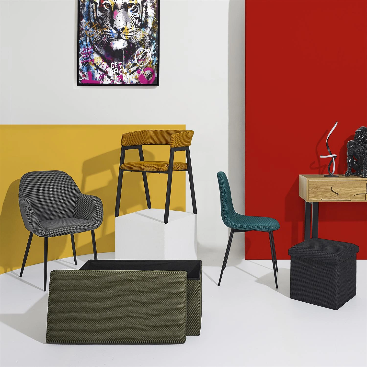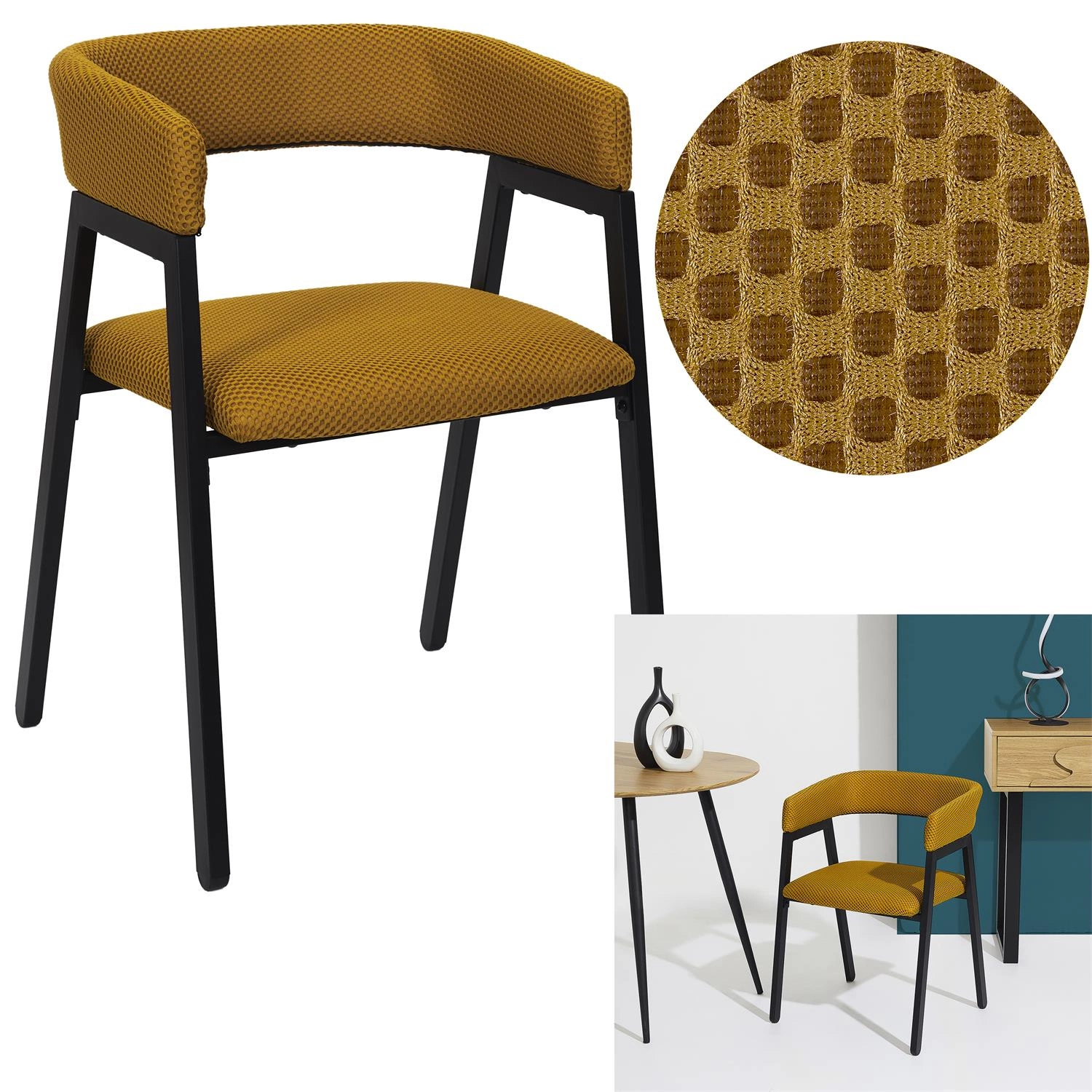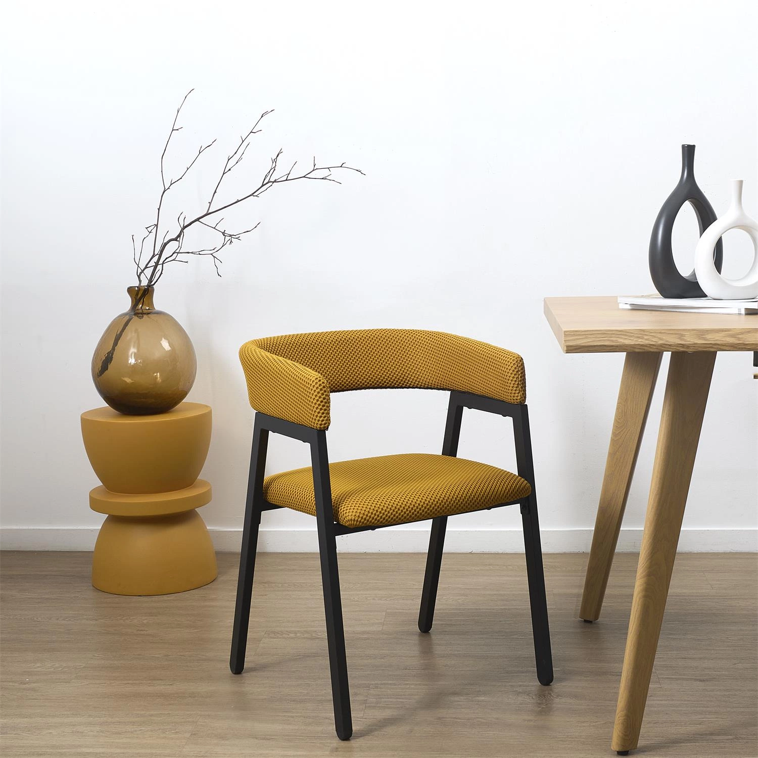 Čalouněná židle Craft Intesi je moderní sedací nábytek s područkami, navržený pro každodenní pohodlí. Žluté čalounění z prodyšné látky a pevný černý kovový podstavec dělají z tohoto modelu ideální volbu do jídelny, kuchyně nebo obývacího pokoje. Rozměry sedáku – šířka 50,5 cm, hloubka 50 cm, výška sedu 45 cm – zajišťují komfort jak při rodinných večeřích, tak při práci u stolu.
