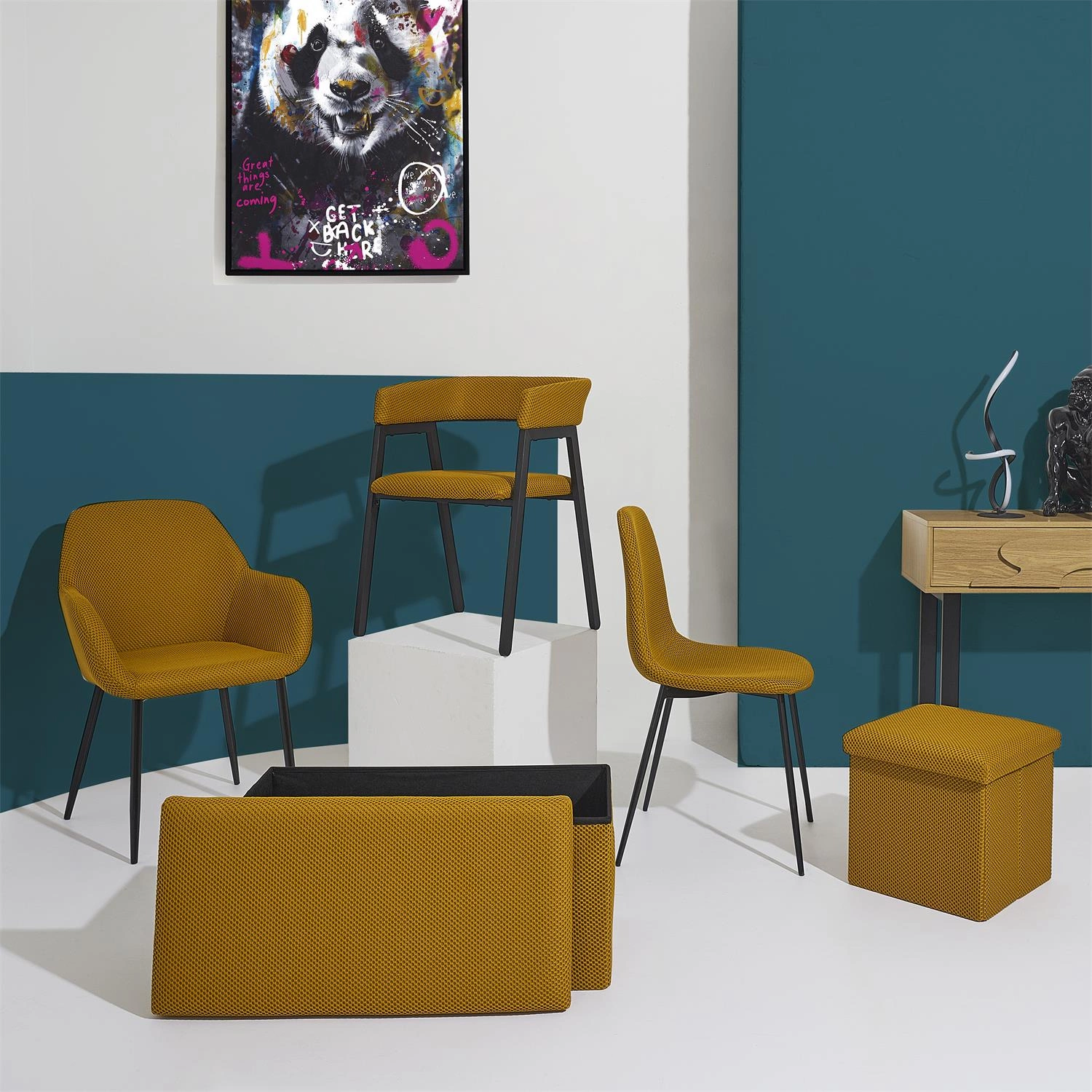 Pokud hledáte čalouněnou židli, která se stane dominantním prvkem vaší domácnosti, Craft Intesi v energické žluté barvě je perfektní volbou. Tento model skvěle zapadá do trendů moderního bydlení – jeho geometrické tvary a sytý odstín dodávají prostoru lehkost a svěžest. Židle se hodí jak do světlé, minimalistické jídelny, tak do útulné kuchyně s dřevěnými nebo kovovými prvky, kde vytváří stylový kontrast a podtrhuje osobitý styl majitelů.