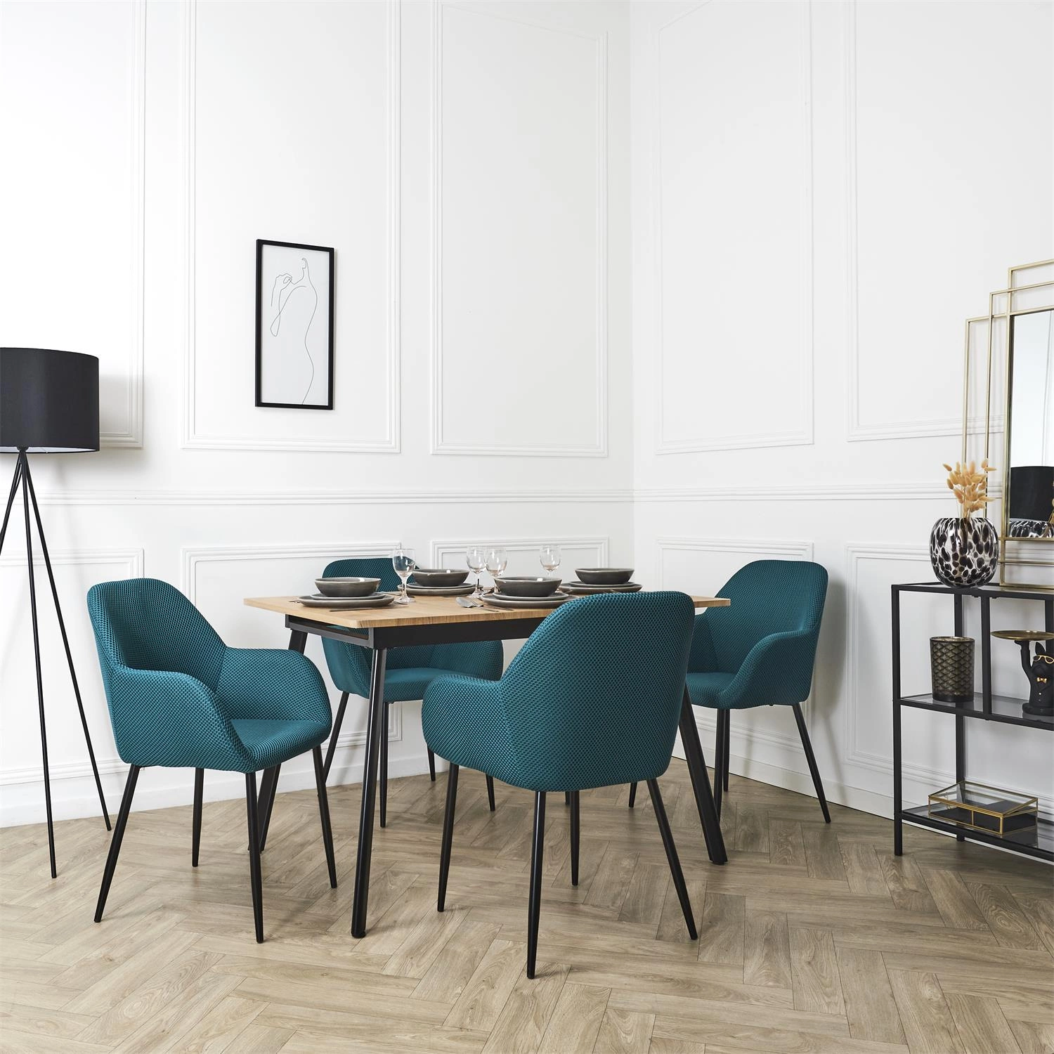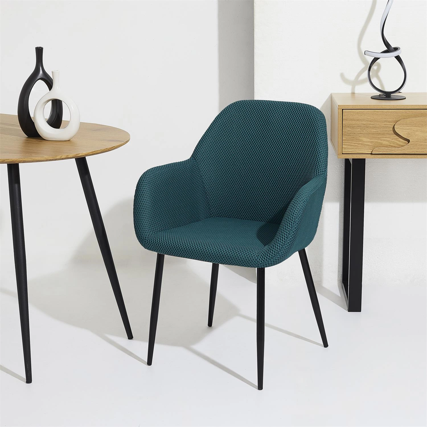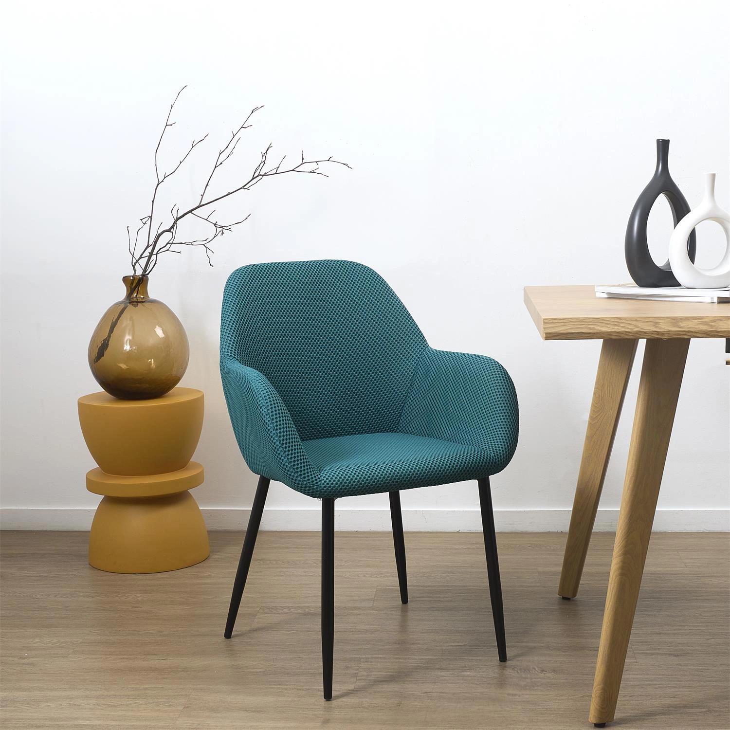 Čalouněná židle Lavia Intesi v tyrkysové barvě je ideální volbou pro ty, kteří hledají moderní nábytek do jídelny nebo obývacího pokoje, spojující pohodlí při používání s výrazným designem. Široké sedadlo, ergonomické područky a měkká, snadno udržovatelná látka zajistí komfort během každodenního stolování i delších setkání u stolu. Stabilní kovová základna se čtyřmi vysokými nohami zaručuje nosnost až 110 kg a umožňuje snadné čištění pod židlí, včetně použití robotického vysavače.