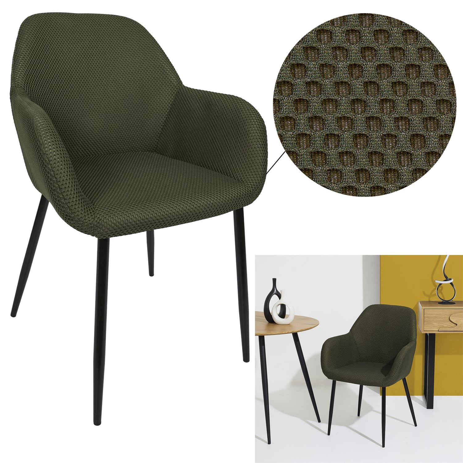 Zvolte čalouněnou židli Lavia v zelené khaki Intesi a dopřejte svému interiéru kombinaci pohodlí, moderního vzhledu a praktičnosti, kterou oceníte každý den.