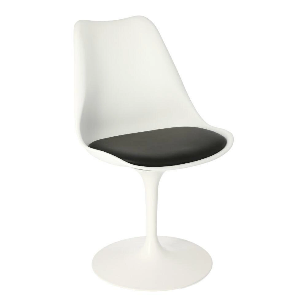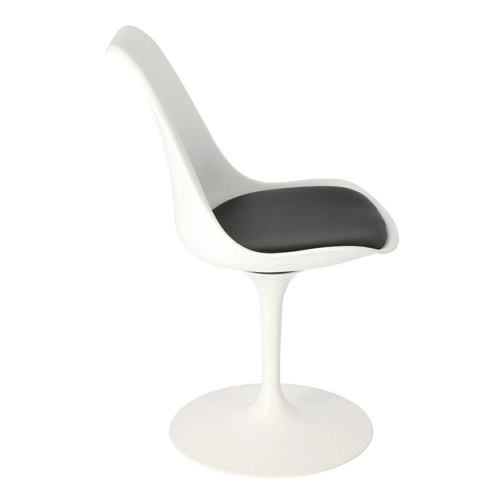 Židle Tulip Basic je inspirován židlí Tulip, kterou v roce 1956 navrhl Eero Saarinen. Základna židle je vyrobena z plastu. Na podstavci je připevněn plastový sedák. Součástí dodávky je černý sedák. Polštář je vyroben z ekokůže a není odnímatelný. Sedák je otočný, díky čemuž se židle pohodlně používá. Židle Tulip, křeslo Tulip a stůl Tulip tvoří rodinu výrobků navržených Eero Saarinenem, pro kterou jsou charakteristické podnože na jedné zužující se noze pr.. Vlastnosti výrobku: - oděrky na vnitřní straně sedáku - oděrky na podnoži