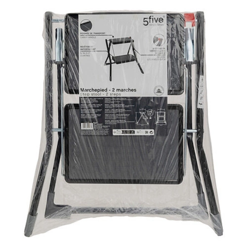 Dvoustupňový skládací žebřík černé barvy od společnosti 5five simply smart je ideálním řešením pro lidi, kteří potřebují malý, ale stabilní žebřík pro každodenní domácí práce. Snadno s ním dosáhnete na knihy z horní police, vyměníte žárovku nebo vymalujete strop. Jeho použití je mimořádně jednoduché a snadno se skladuje, což z něj činí nepostradatelnou pomůcku v každé domácnosti.