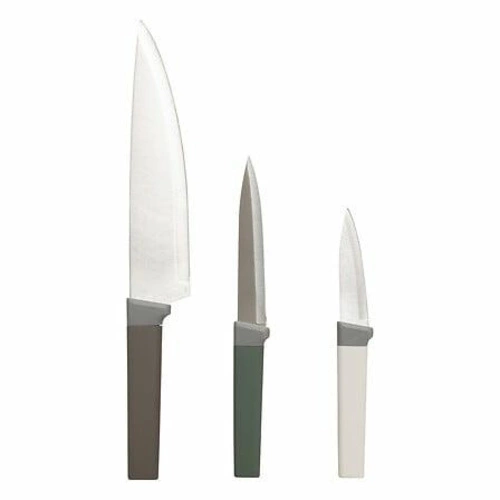 Sada 3 kuchyňských nožů 5five simply smart je praktický komplet, který usnadní každodenní vaření a přípravu jídel. Součástí sady jsou tři funkční nože s odlišnou délkou čepele, vyrobené z odolné nerezové oceli a opatřené protiskluzovými rukojeťmi v bílé, zelené a šedé barvě. Skvěle poslouží jak na krájení zeleniny, tak na porcování masa – ideální volba do každé moderní kuchyně.