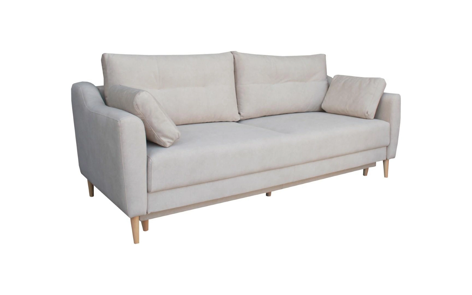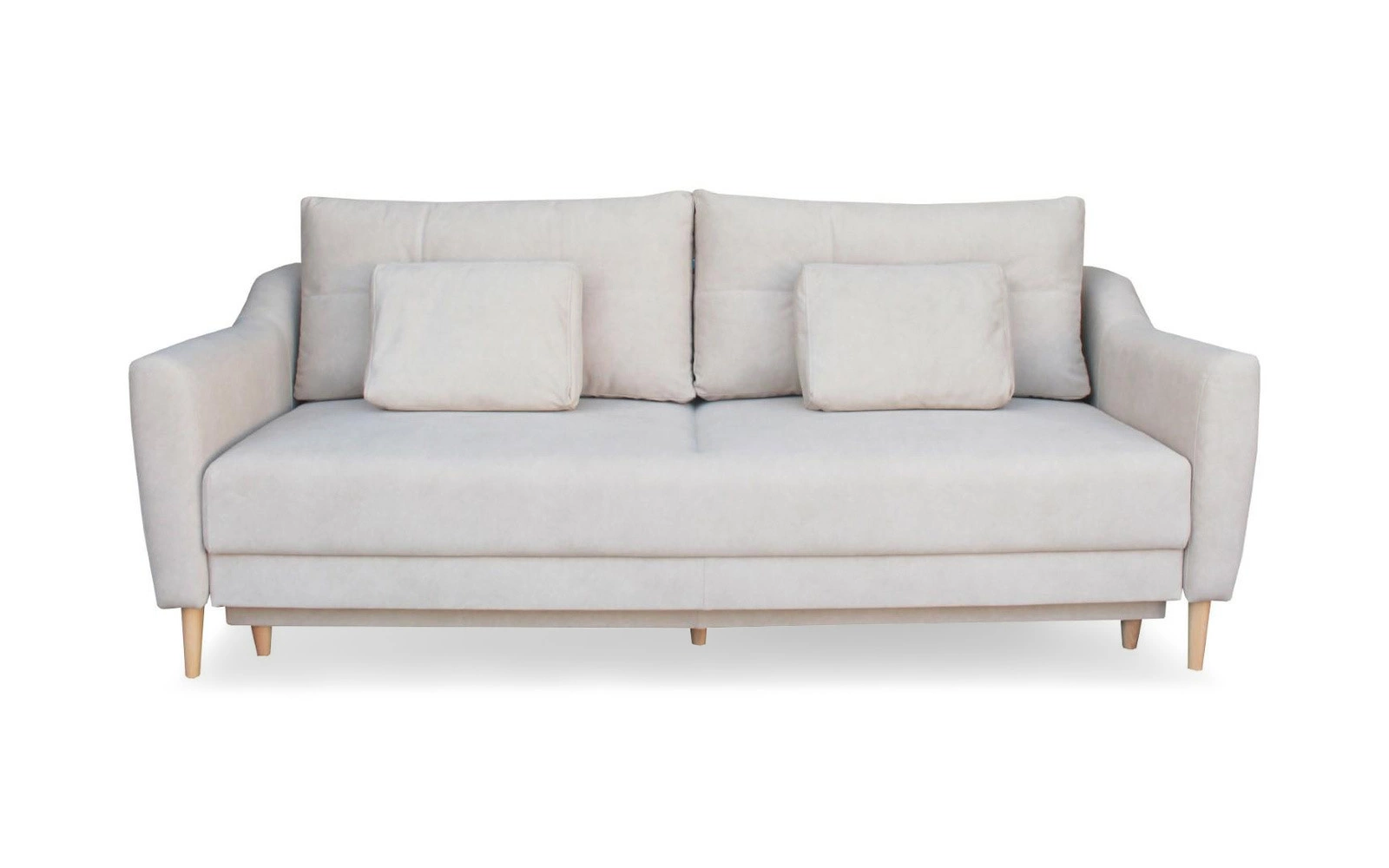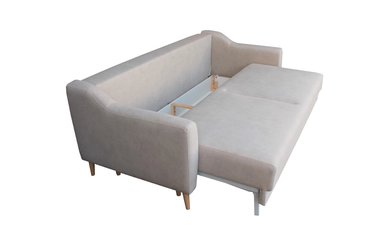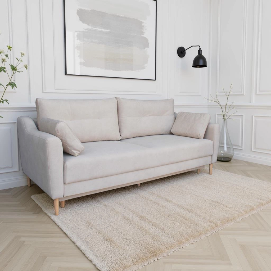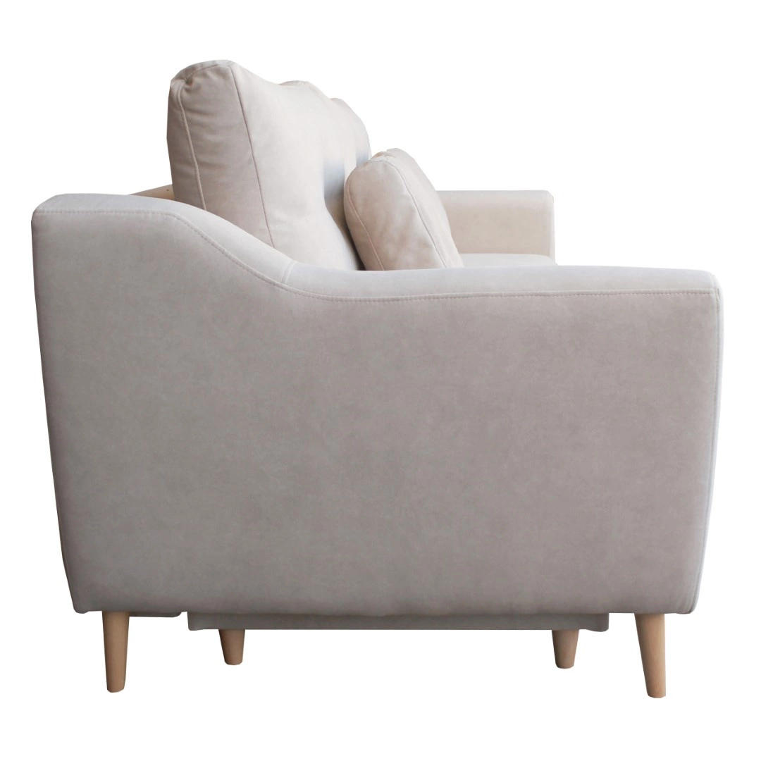 Rozkládací pohovka Bouley od značky Intesi je třímístný nábytek, který spojuje skandinávský design s praktickými funkcemi – rozkládáním na spaní a úložným prostorem na lůžkoviny. Šířka 211 cm zajišťuje, že pohovka skvěle poslouží jako pohodlné místo pro každodenní odpočinek i jako plnohodnotná postel o rozměrech 190×142 cm. Jemný béžový odstín látky Cloud a přírodní dřevěné nohy podtrhují lehkost a harmonii skandinávského stylu, díky čemuž vnesou do vašeho obývacího pokoje útulnou atmosféru.