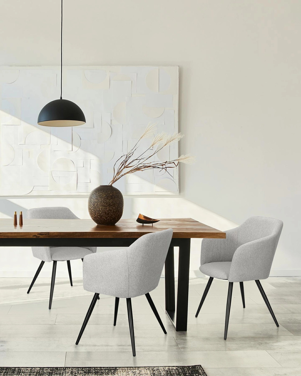 Elegantní židle Molto kombinuje módní látku s robustní kovovou základnou. Sedák v šedé barvě dokonale ladí s matným černým podstavcem. Kovové nohy jsou čistitelné a odolné proti skvrnám, zatímco sedák má matnou povrchovou úpravu. Výrobek je navržen ve stylu Glamour. Židle je lehký, váží přibližně 5-6 kg, s maximální nosností 120 kg. rozměry: Výška sedáku: šířka sedáku: 46 cm: výška područek: 42 cm: 70 cm Seat depth: výška nohou: 46 cmSk. vlastnosti výrobku: -defekt sedáku, špatné rozložení výplně