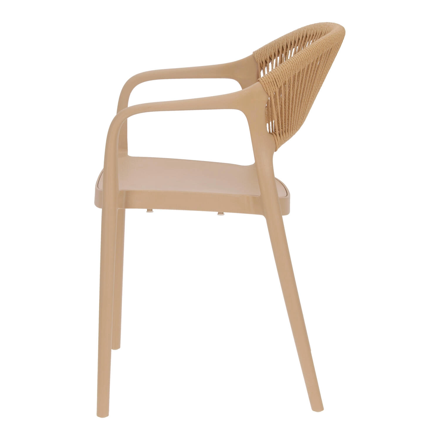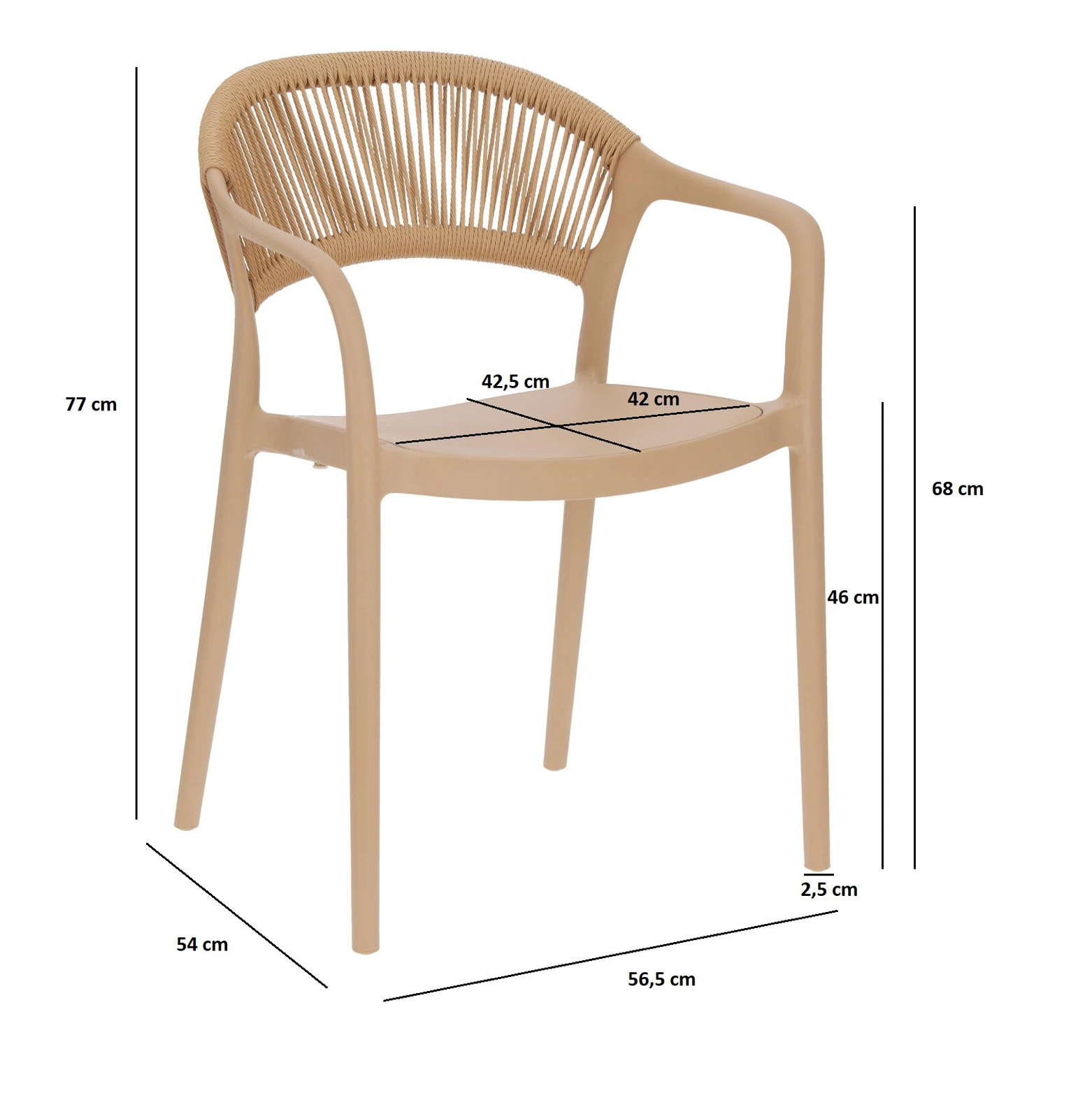 Zahradní židle Osma béžová od značky Intesi spojuje oblíbený boho styl s moderní funkčností. Vyrobena z odolného polypropylenu s polomatným povrchem, zaujme přirozenou barvou a jemnými liniemi. Ergonomické područky zvyšují komfort sezení. Díky možnosti stohování a vysoké odolnosti vůči venkovním vlivům je židle ideální na terasu, zahradu, balkon, ale i do kuchyně či restaurace.