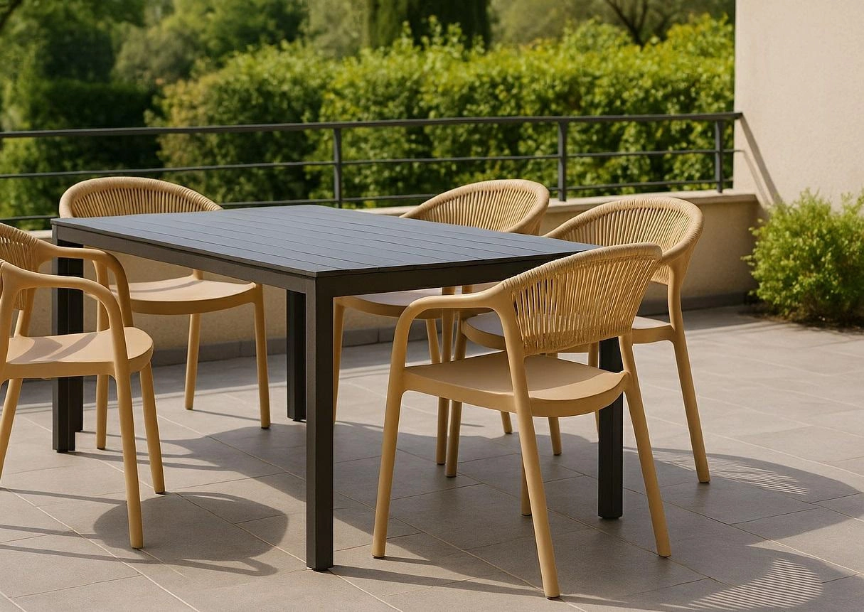 - Stohovatelná konstrukce – šetří místo při skladování, což oceníte na terase i v kavárně
