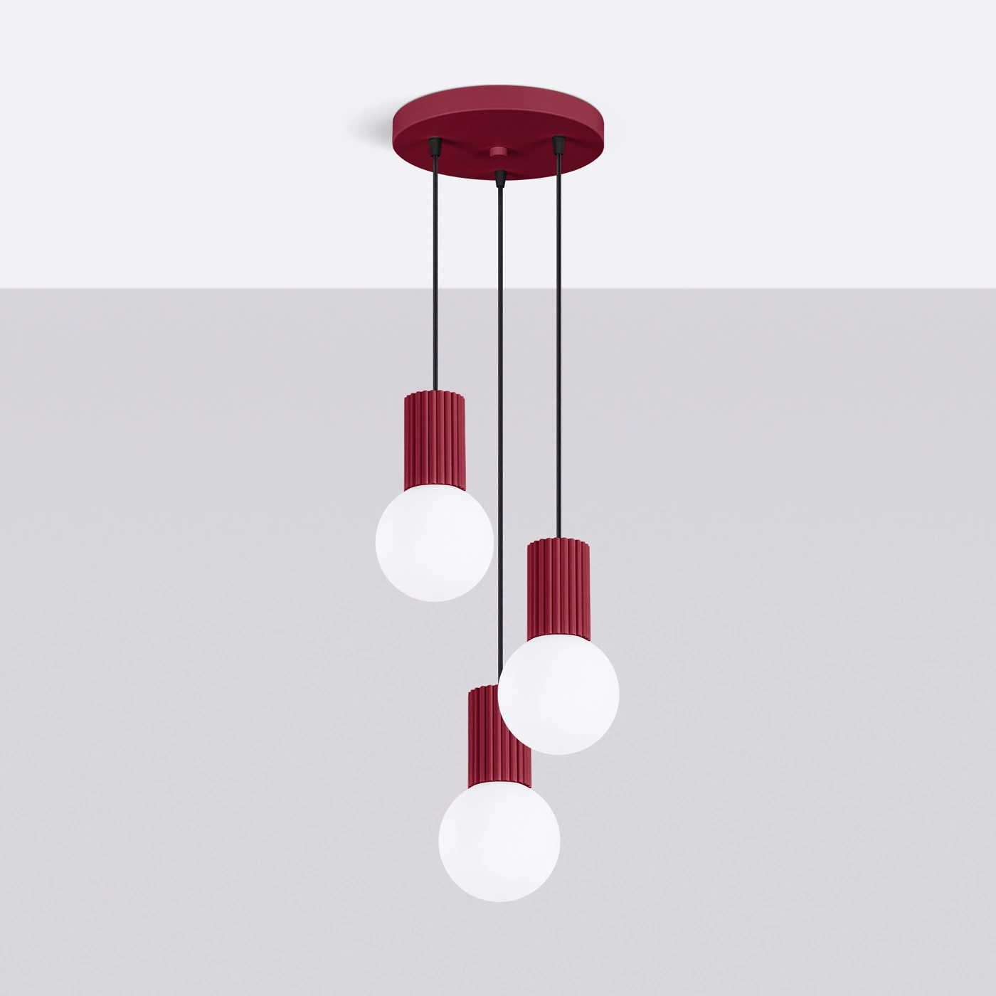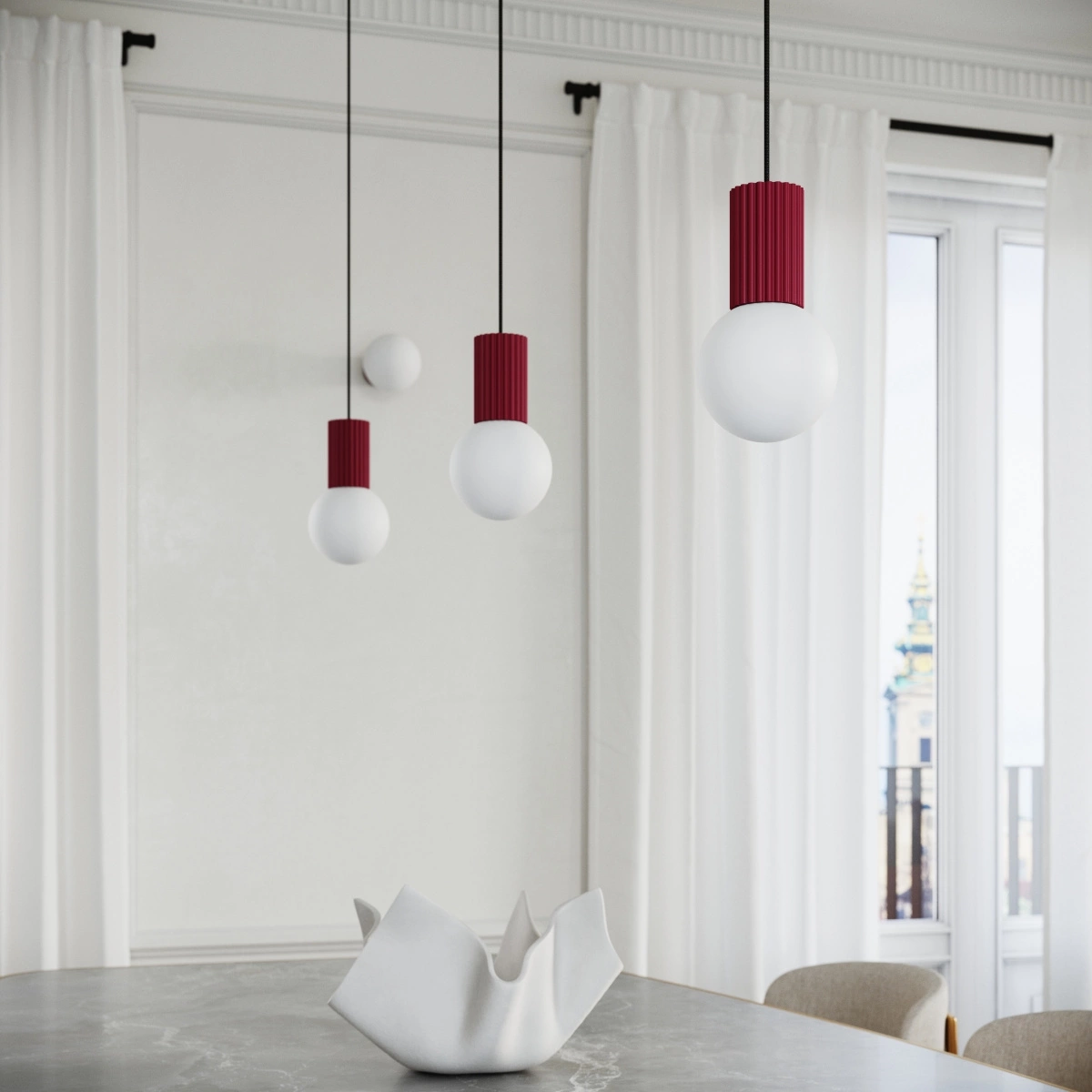 Lampa HALO 3P se skvěle hodí do moderních interiérů, přičemž výrazná burgundská barva okamžitě upoutá pozornost a dodá místnosti osobitý charakter. Skleněná kulatá stínidla jemně rozptylují světlo, čímž vytvářejí útulnou atmosféru ideální k relaxaci po náročném dni. Minimalistický tvar a kvalitní materiály činí tento lustr unikátním dekorativním prvkem nejen do obýváku, ale i do jídelny nebo nad kuchyňský ostrůvek.