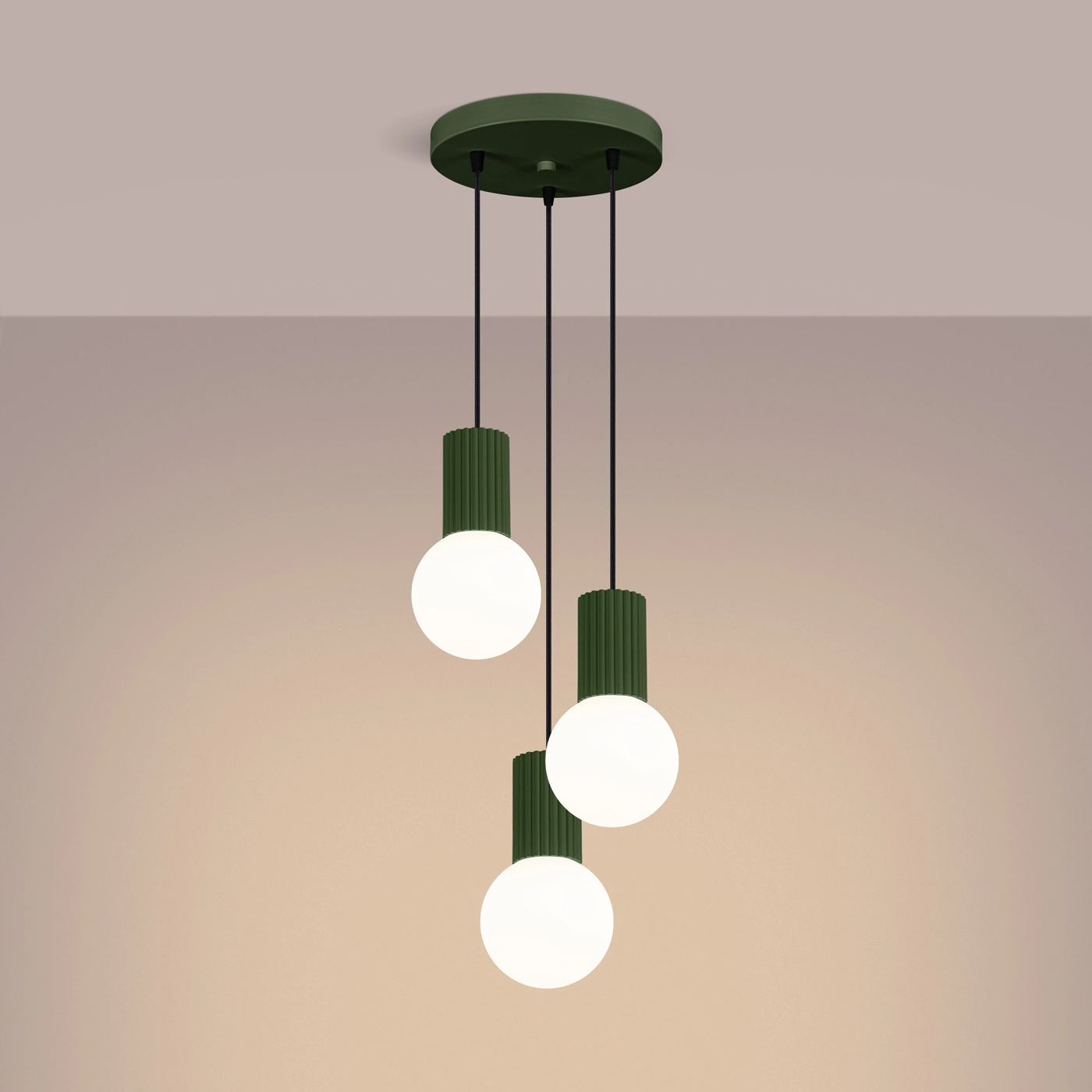 Závěsné svítidlo HALO 3P zelená olivová skleněná moderní do obýváku a kuchyně SOLLUX