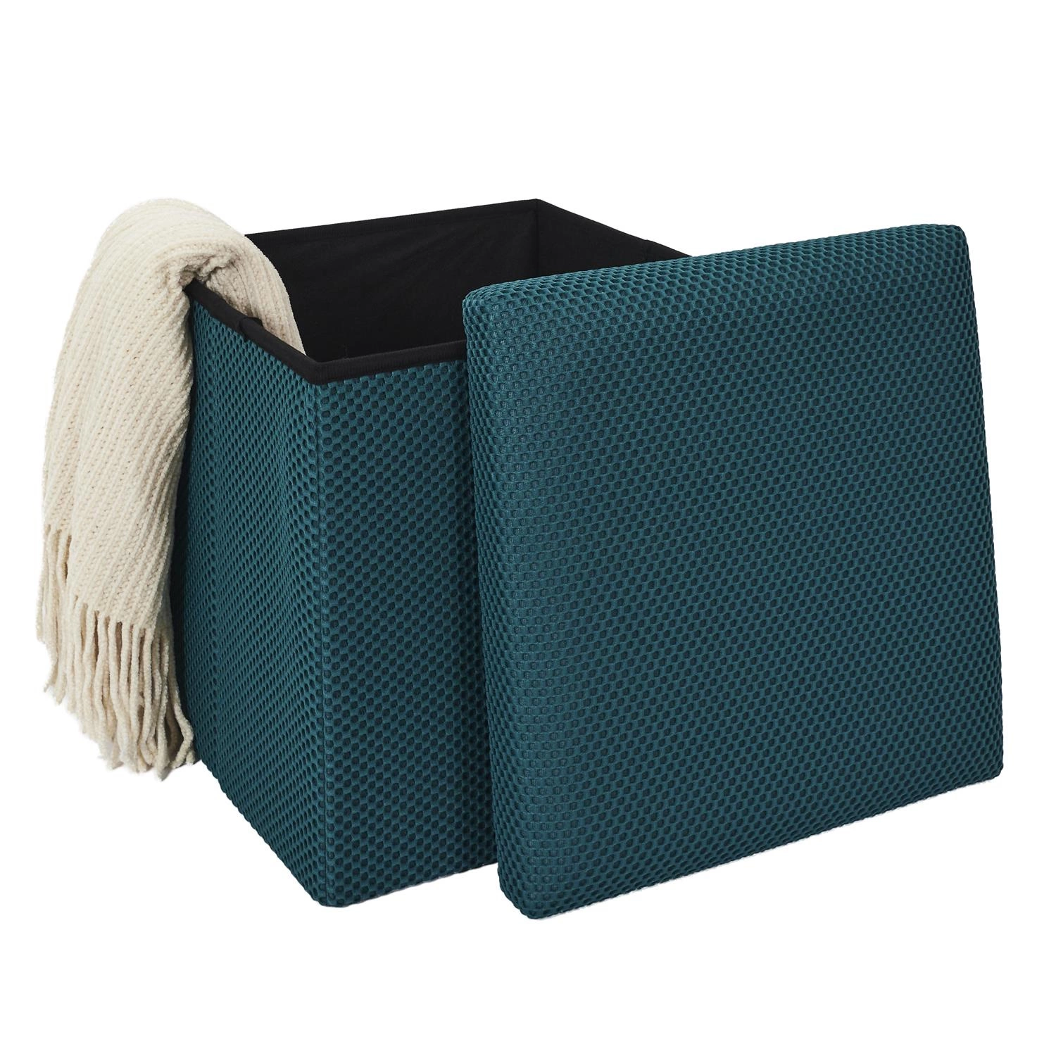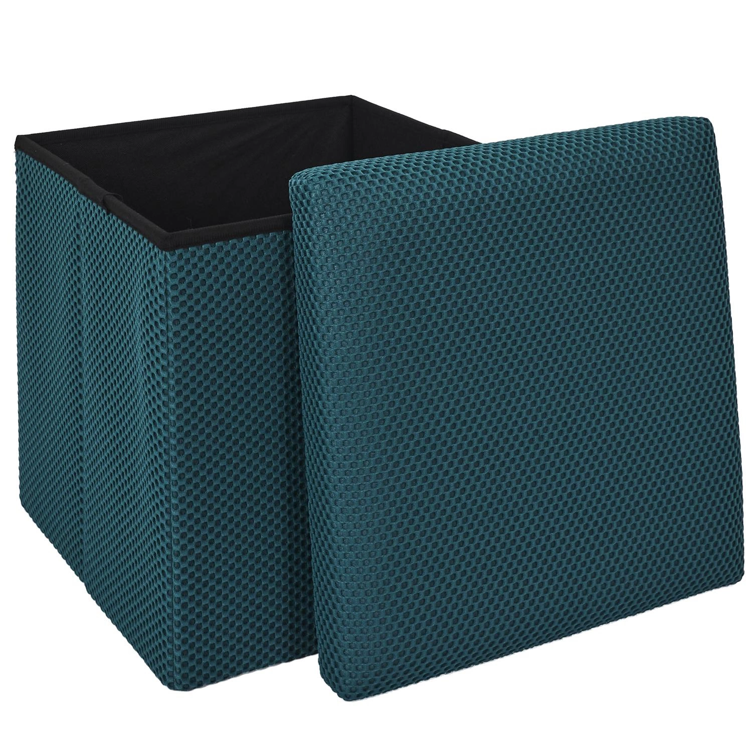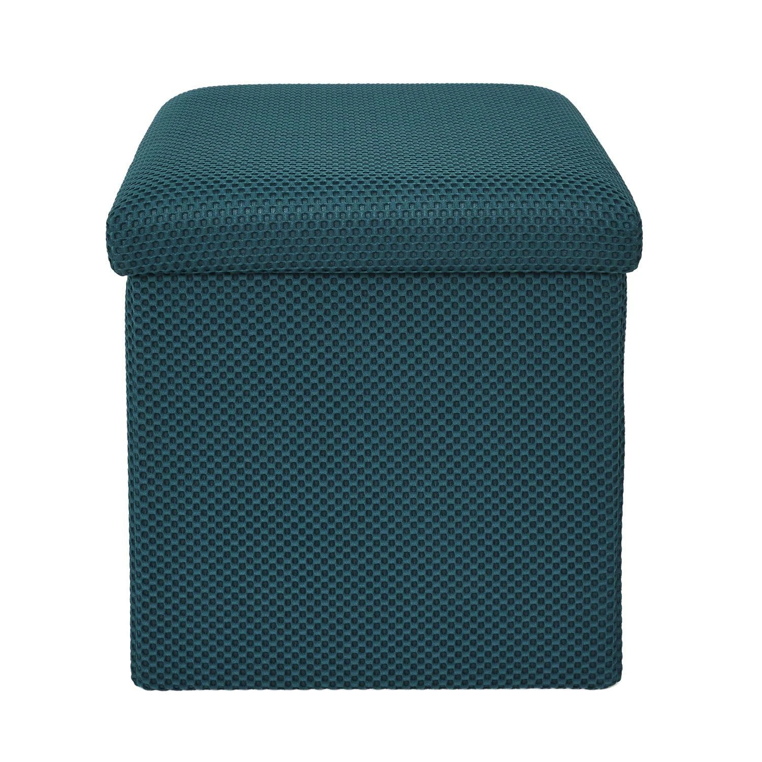 Skládací taburet s úložným prostorem Vels Atom tyrkysový čtvercový do předsíně a studentského pokoje