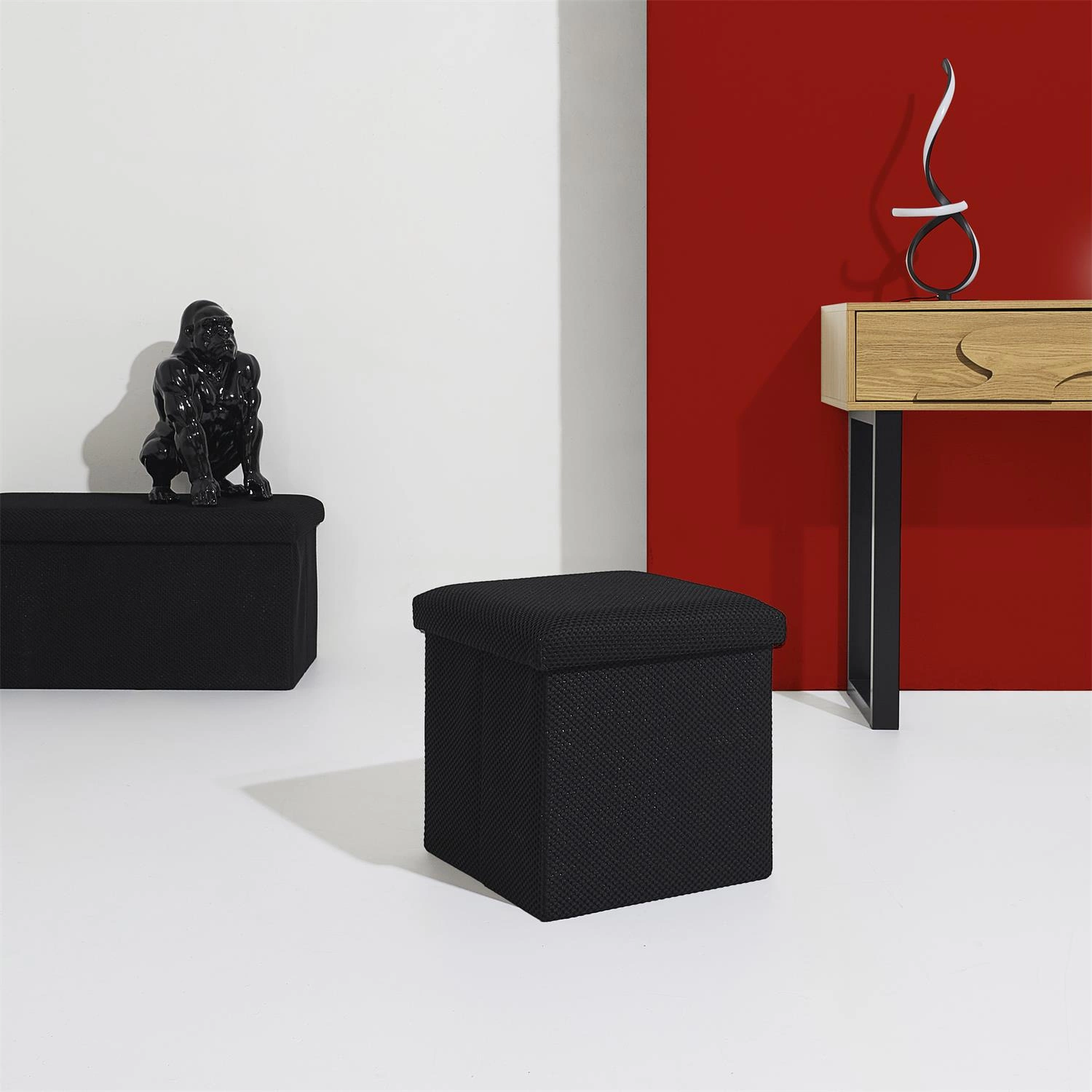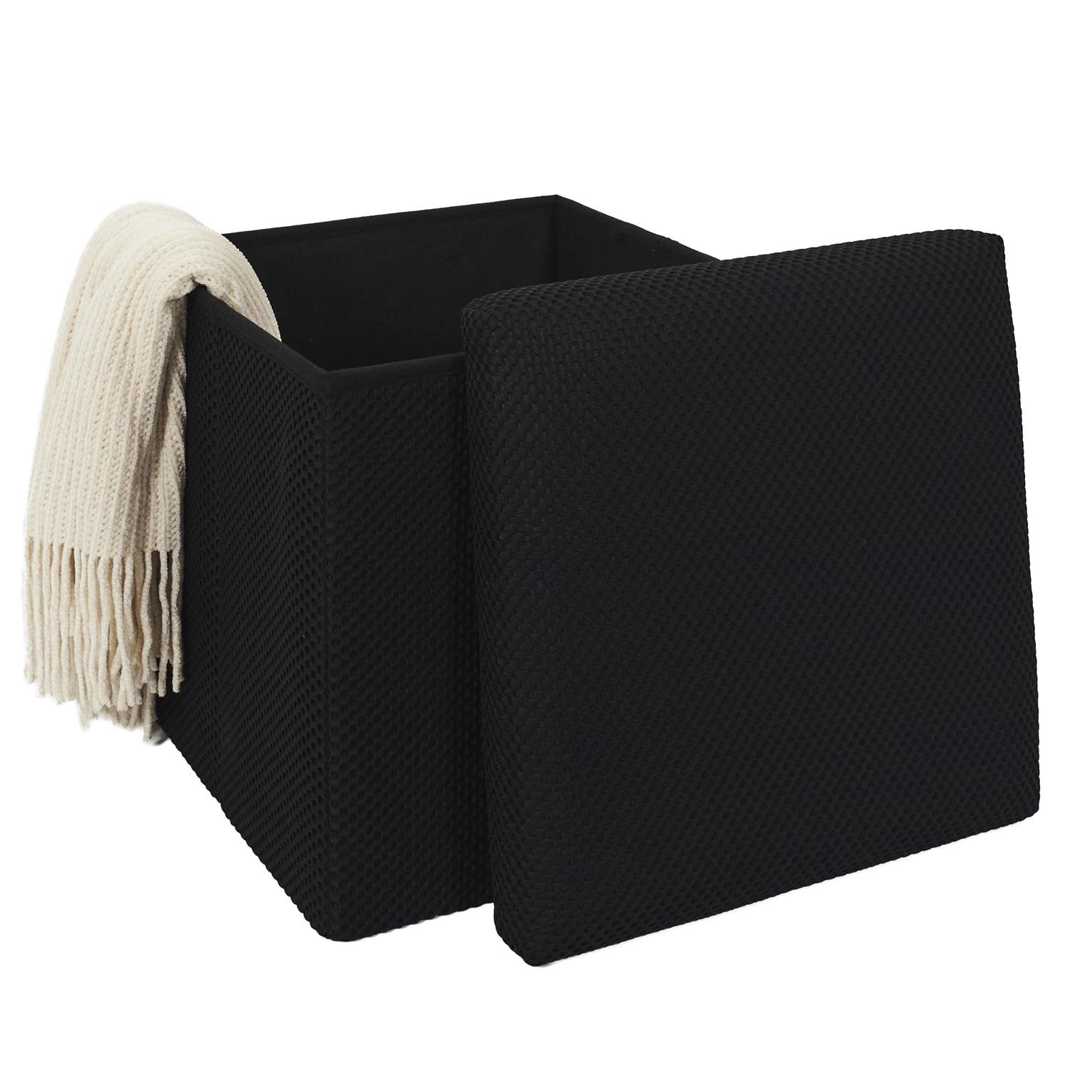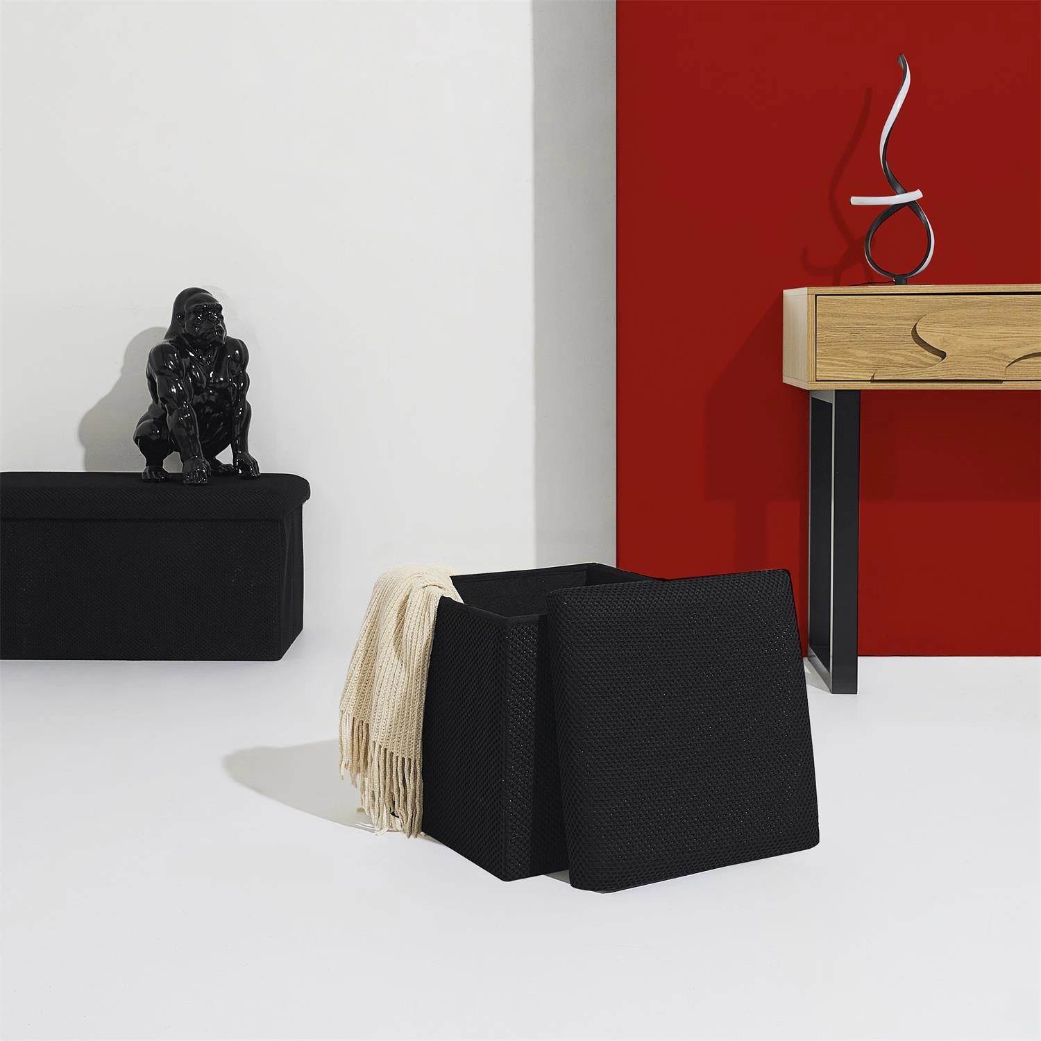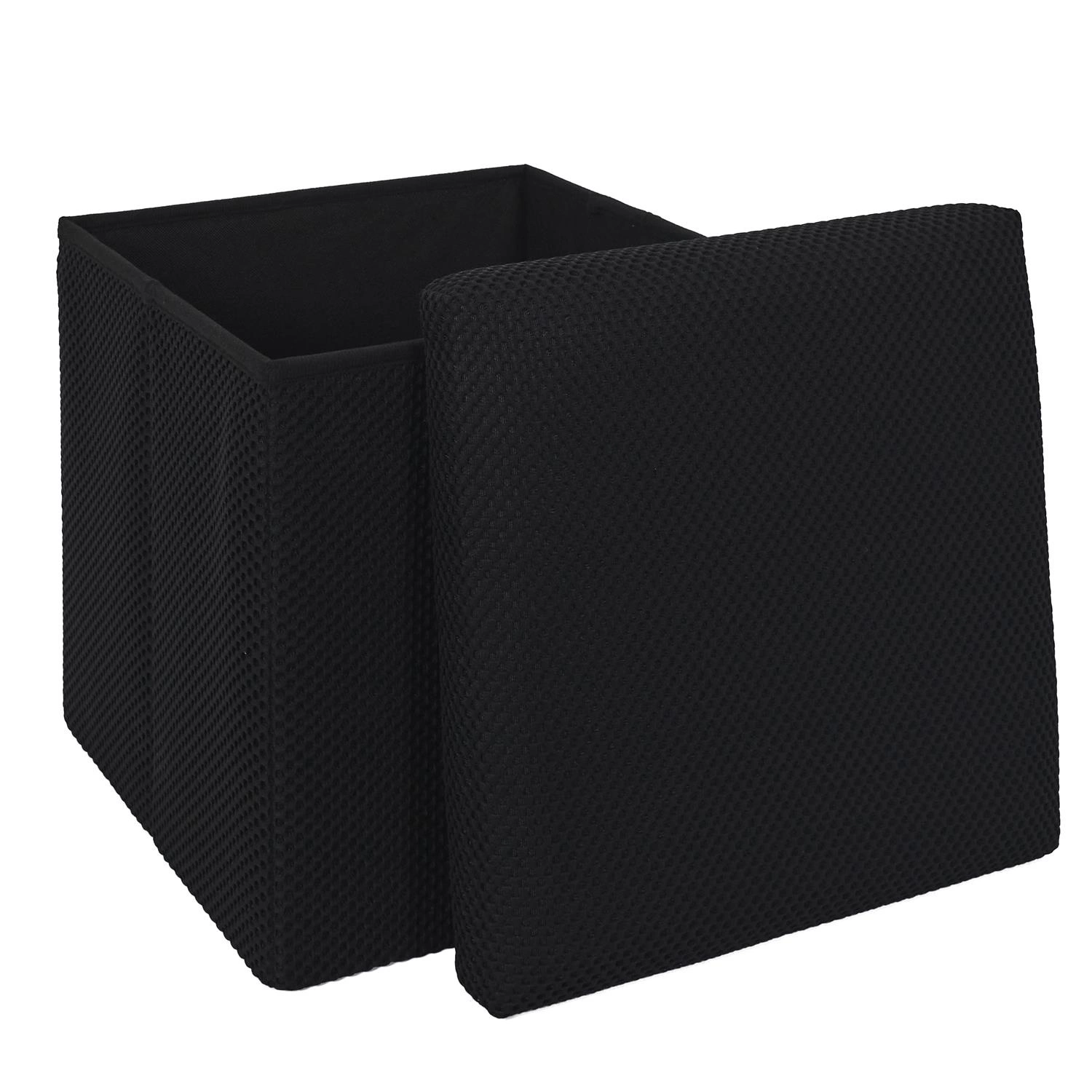 Skládací černý taburet se skrytým úložným prostorem Vels Atom čtvercový do předsíně a studentského pokoje Intesi