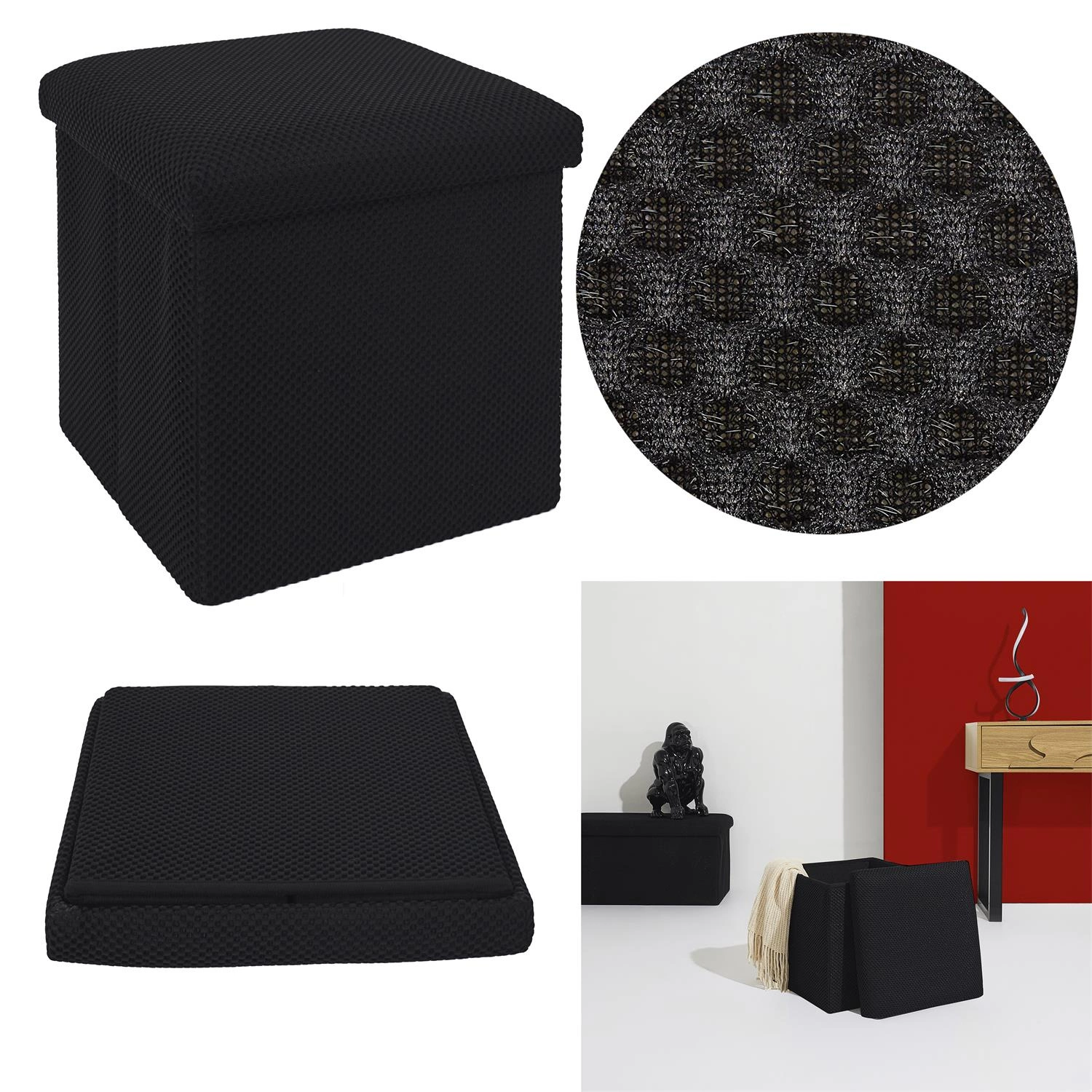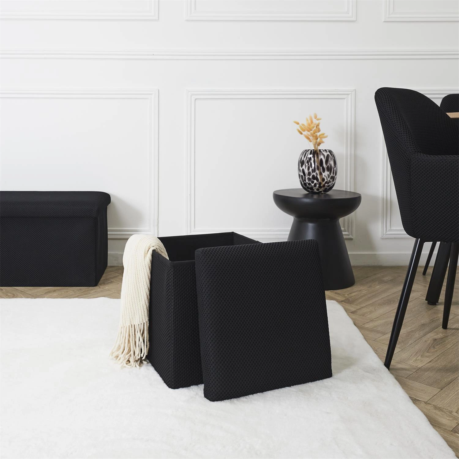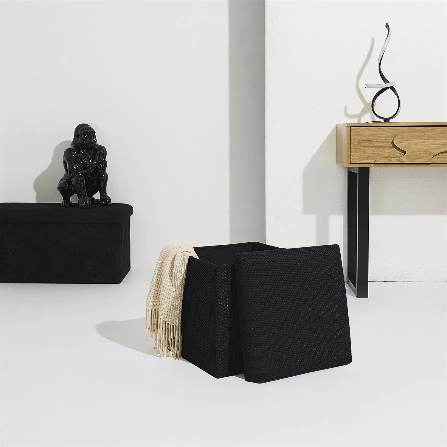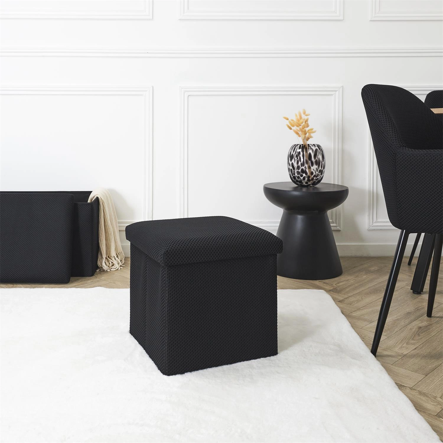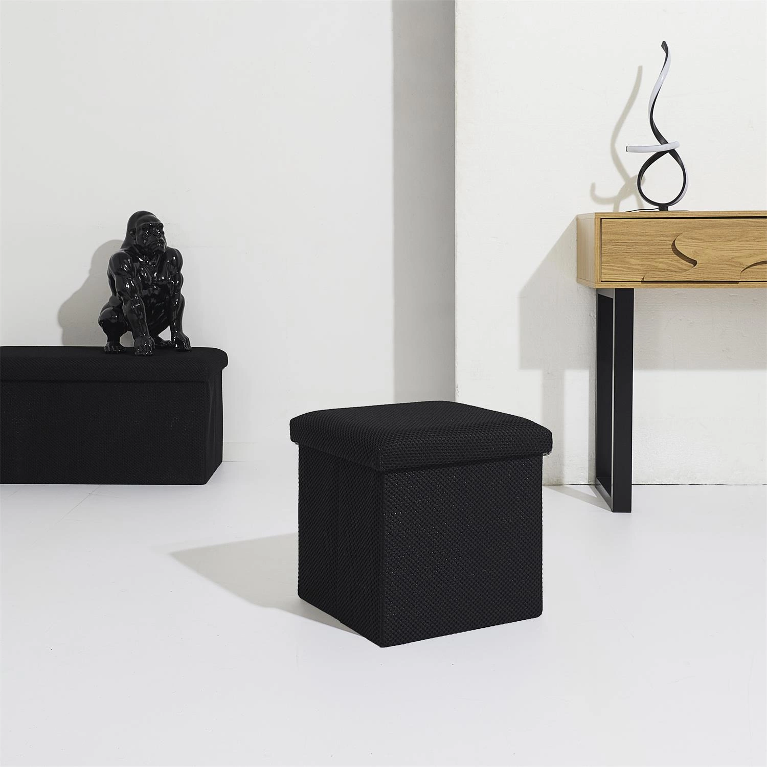 Skládací černý taburet se skrytým úložným prostorem Vels Atom čtvercový do předsíně a studentského pokoje Intesi