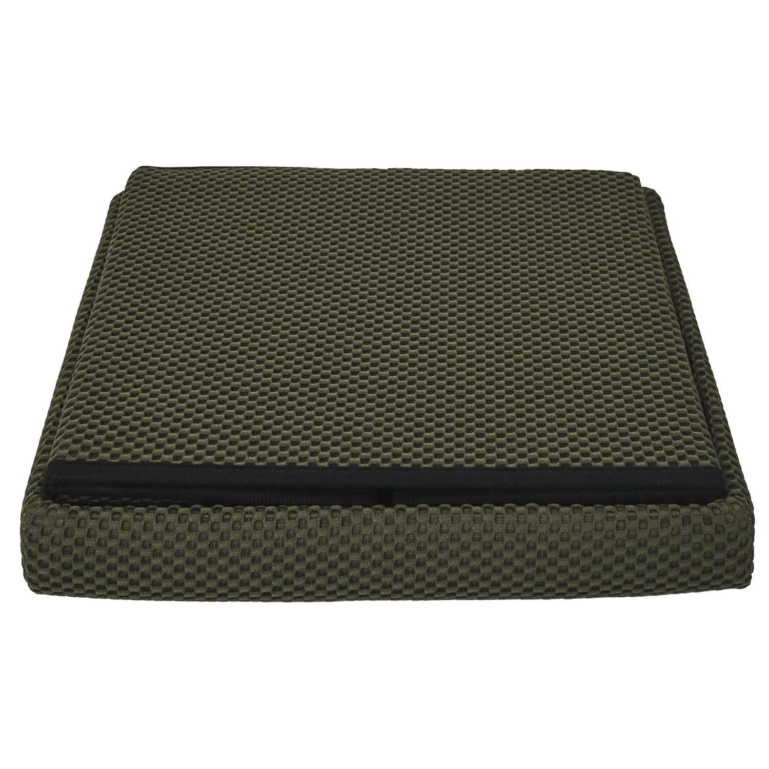 Výrazný odstín khaki a čtvercový tvar dodávají této pufě moderní vzhled, který perfektně zapadne do minimalistického, skandinávského nebo studentského interiéru. Čalouněná látka se snadno udržuje v čistotě, což ocení zejména rodiny s dětmi nebo domácími mazlíčky. Díky možnosti složení nezabírá pufa místo, když ji zrovna nepotřebujete – jednoduše ji složíte a uložíte do skříně. Praktické řešení pro ty, kteří ocení flexibilitu a úsporu prostoru.