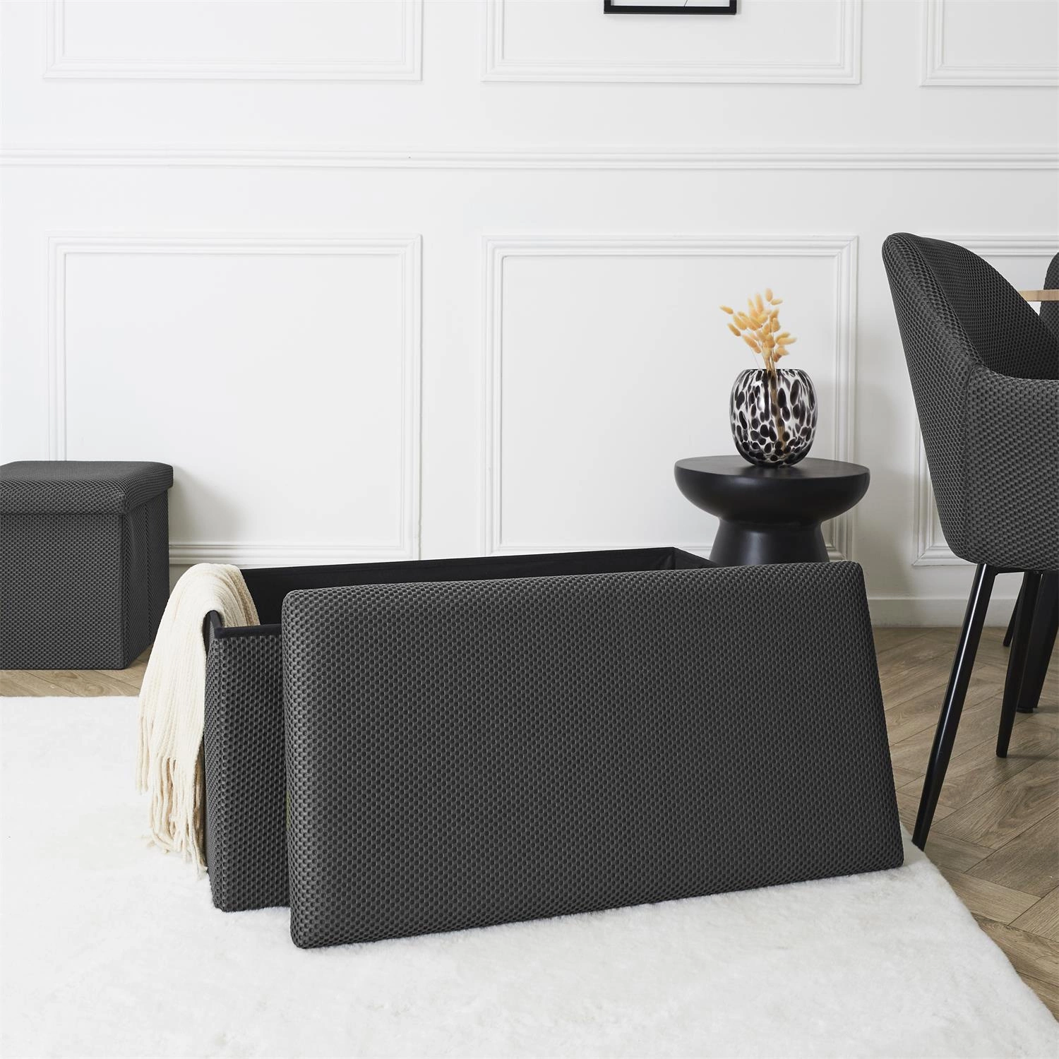 Pufa se skrytým úložným prostorem Velse Atom od značky Intesi je moderní a praktické řešení pro ty, kteří ocení pořádek a pohodlí. Tento model je vyroben z měkké látky v elegantní šedé barvě a jeho obdélníkový tvar se skvěle hodí do moderně zařízených interiérů. Díky funkci skládání a prostornému úložnému prostoru najde své uplatnění v předsíni, studentském nebo dětském pokoji, kde poskytne dodatečné místo pro uložení oblíbených věcí.