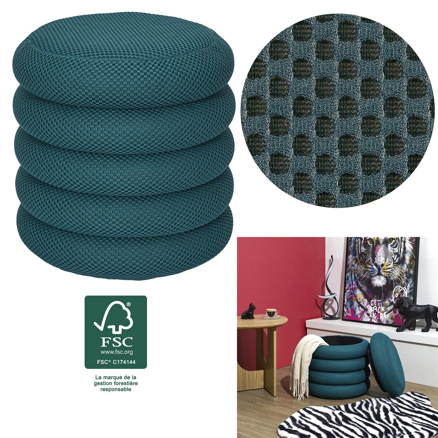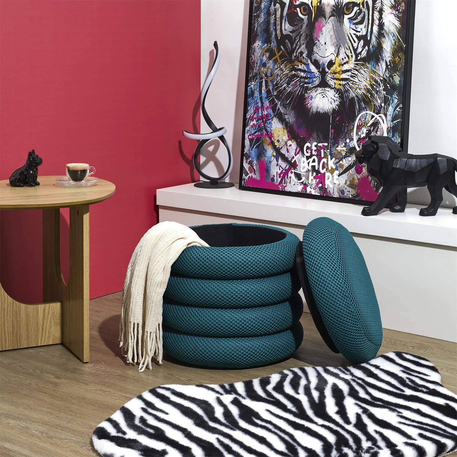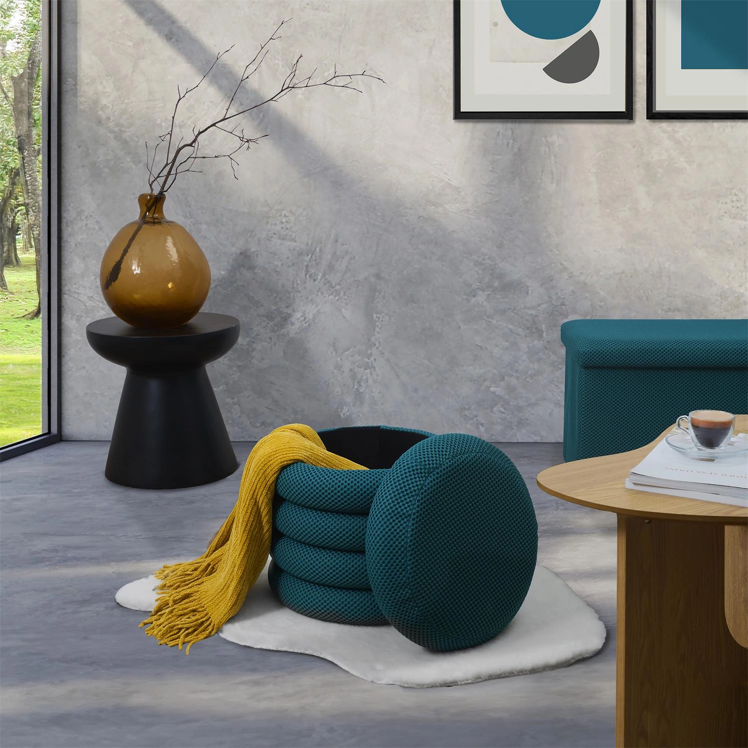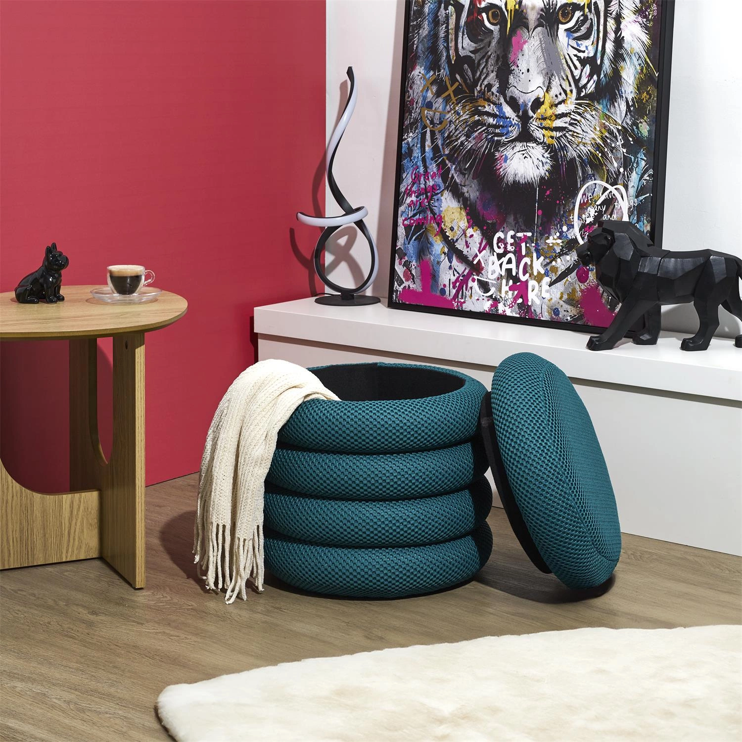 Okrúhlý tyrkysový taburet s úložným prostorem Atom Intesi moderní do obývacího pokoje a ložnice 42 cm