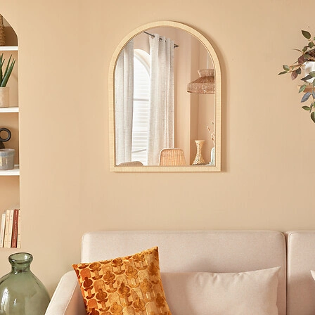 Zrcadlo Thea je ideální volbou pro ty, kteří si potrpí na interiéry s osobitým stylem. Půlkruhový, nepravidelný tvar vnáší do prostoru lehkost, narušuje monotónnost rovných linií a přidává místnosti moderní eleganci. Béžový rám ladí s teplými, přírodními tóny, díky čemuž je zrcadlo perfektním doplňkem do interiérů v retro nebo boho stylu. Nejde jen o praktický prvek vybavení – je to dekorativní detail, který na sebe přitáhne pozornost a vytváří jedinečnou atmosféru domova.
