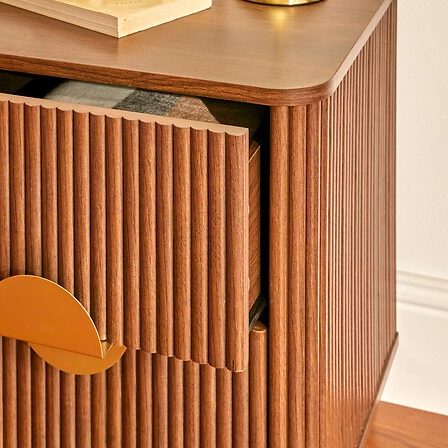 Noční stolek Atmosphera Wany 45 cm v ořechovém odstínu je skvělou volbou pro ty, kteří hledají harmonii a funkčnost do své ložnice. Zaujme japandi stylem, přírodním ořechovým dekorem a elegantními, svisle frézovanými čely zásuvek. Dvě prostorné zásuvky a kvalitní zpracování s důrazem na detail zaručují, že noční stolek splní očekávání i těch nejnáročnějších uživatelů.