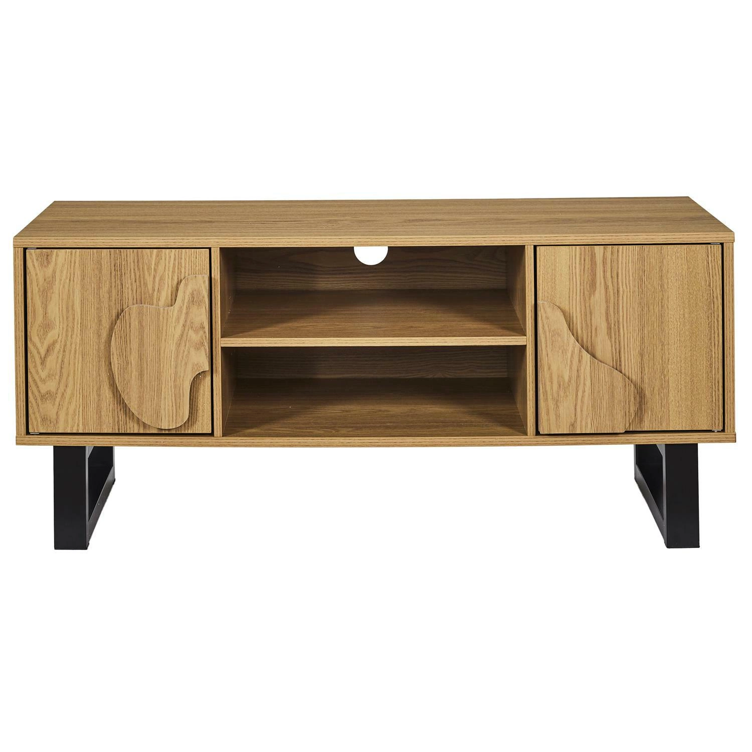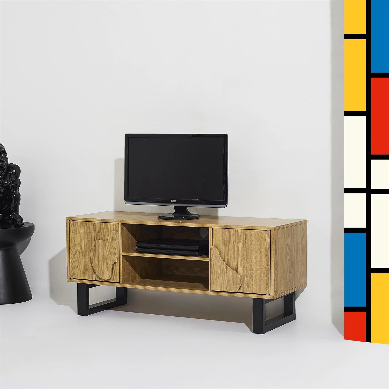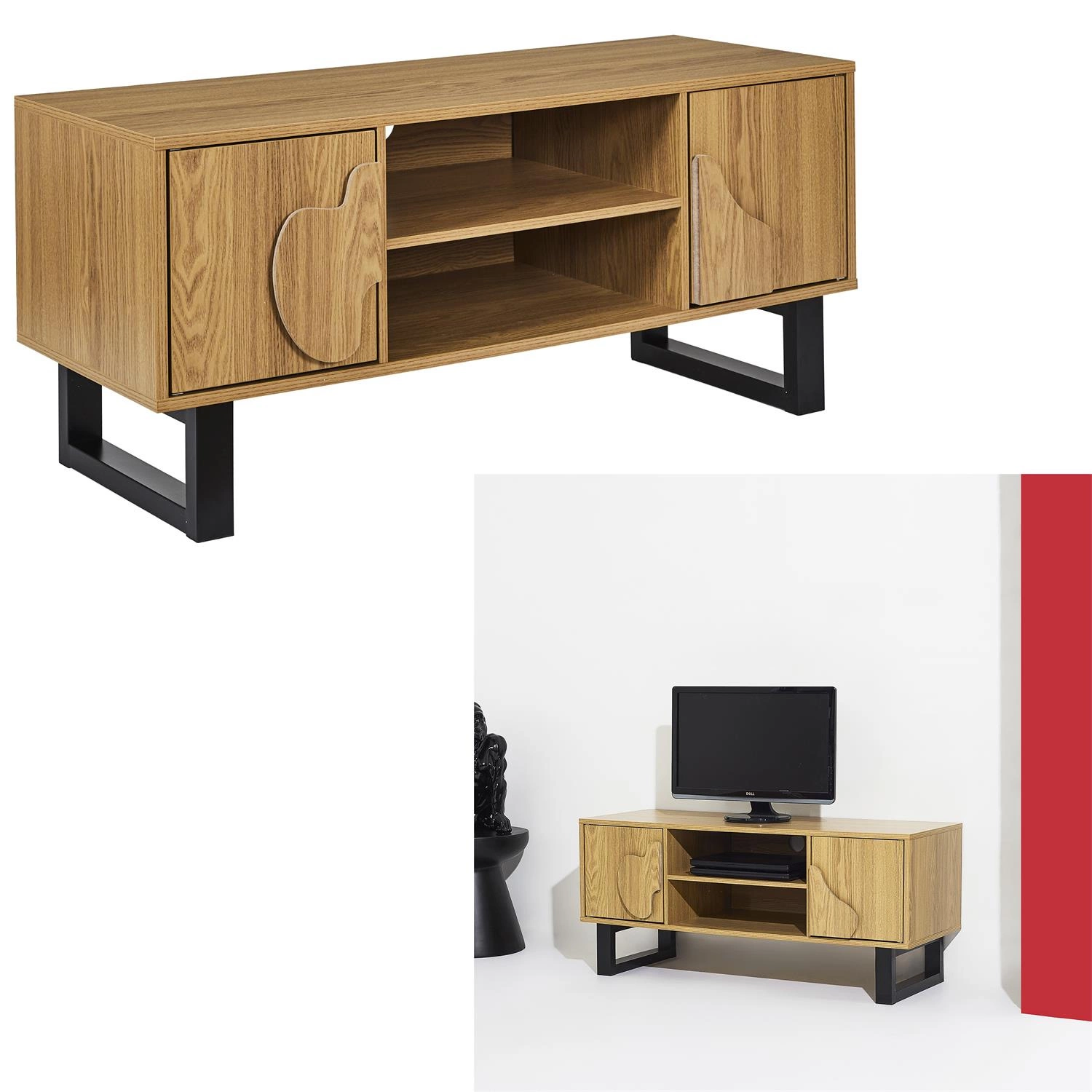 RTV skříňka Calypso 110 cm je volbou pro ty, kdo hledají nejen praktický, ale i designově výrazný TV stolek. Vneste do svého obýváku přírodní boho akcent, užívejte si pohodlí a pořádek každý den. Moderní černá podnož v kombinaci s přírodní deskou zvýrazní styl každého interiéru. Vyberte si stojící RTV skříňku Intesi – získáte pevný, funkční a originální kus nábytku pro vaši relaxační zónu.